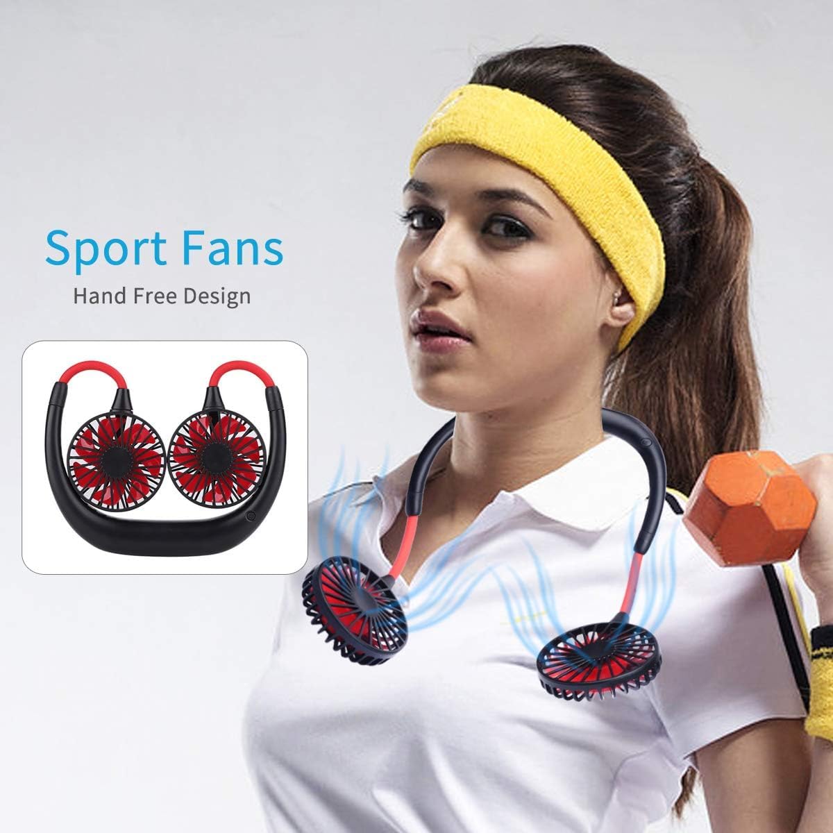 Case Creation® USB Rechargeable Wearable Portable Hand Free Neckband Fan Personal Mini Neck Double Fans 3 Speed Adjustable for Home Office Kithcen Outdoor Kids Women Men
