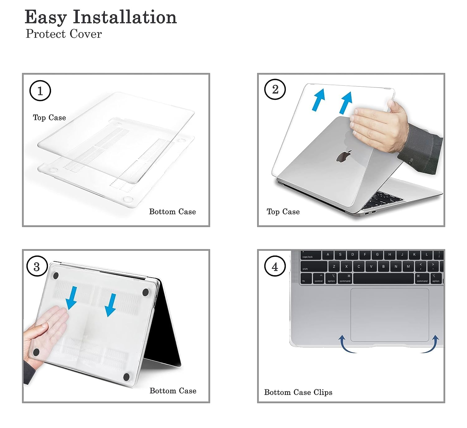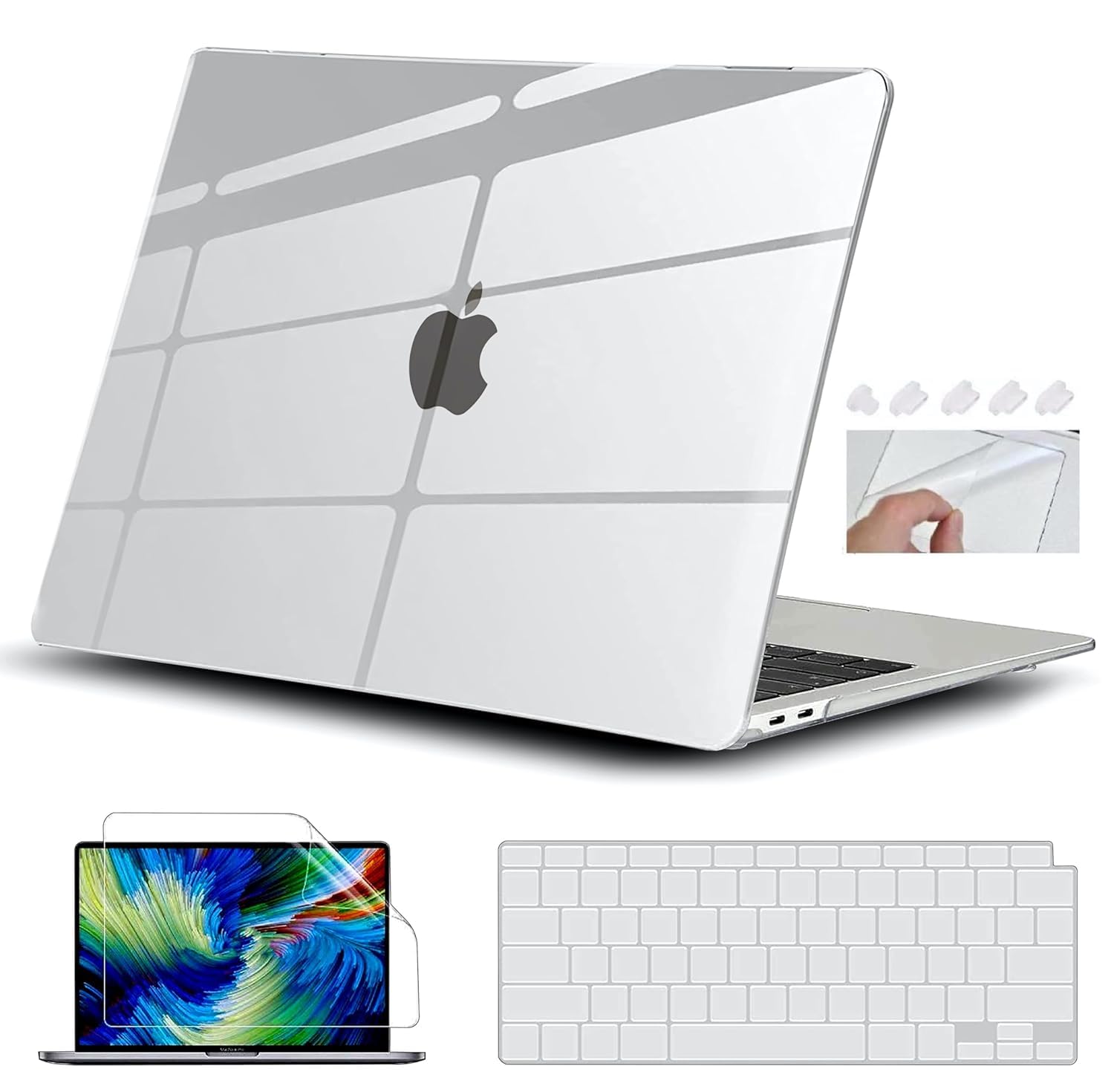 The case allows access to all plugs and drives, plug your charger, cable or headset without removing the case. Package Includes : 1 × Macbook Case, 1 × Keyborad Cover, 1 × Screen Protector, 1 × Touch Pad Protector, 1 × Dust Plugs.