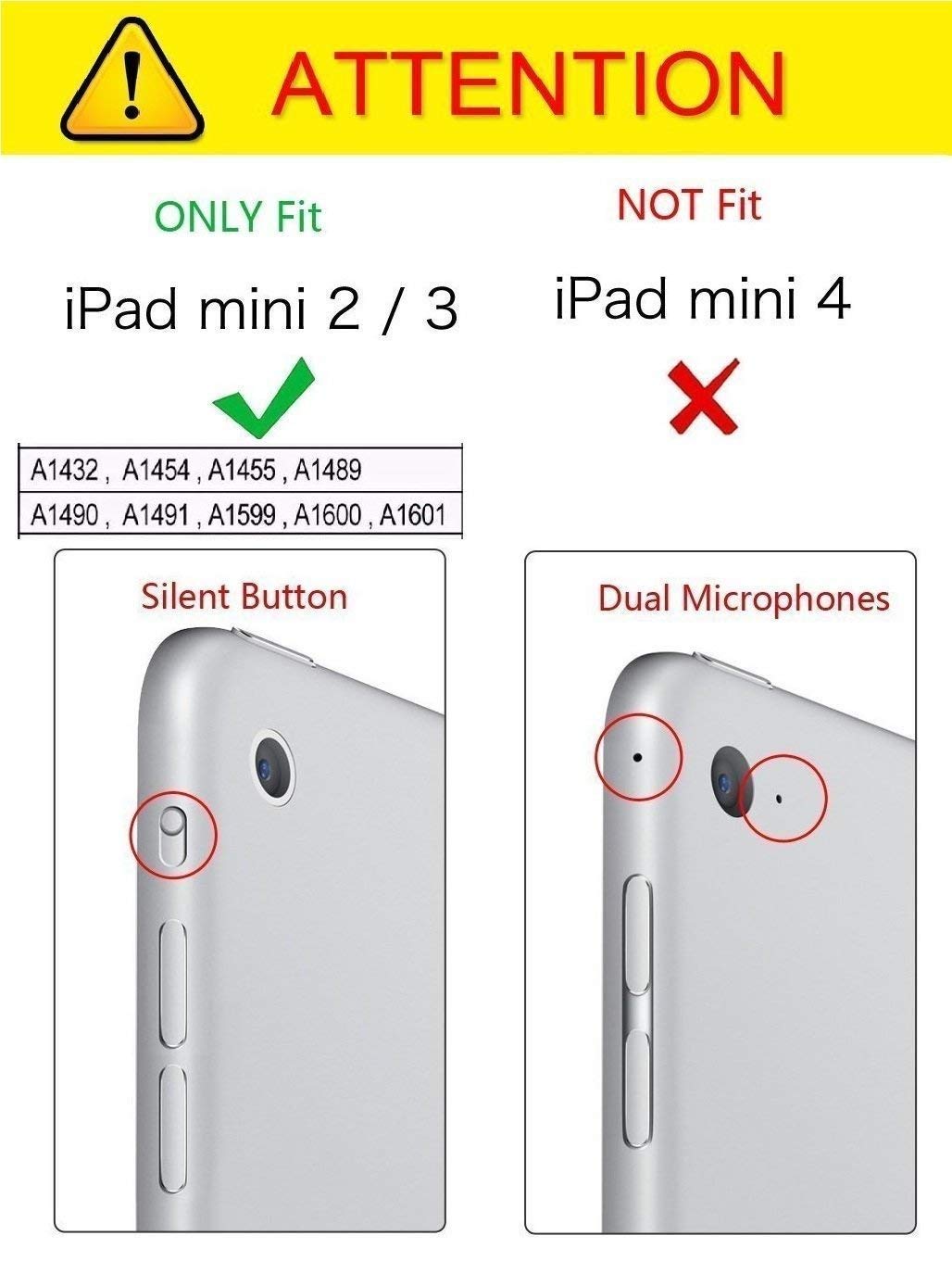 Specially made for Apple iPad Mini 1, iPad Mini 2 and iPad Mini 3 (Model Numbers: A1432 A1454 A1455 A1489 A1490 A1599 A1600 )