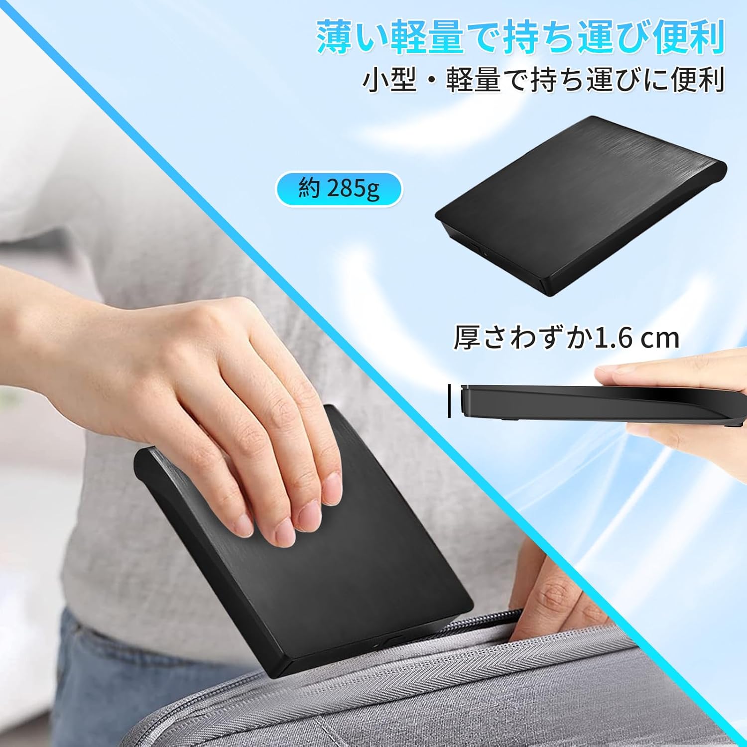 The portable DVD player has a slim and lightweight body, making it an excellent companion for computers