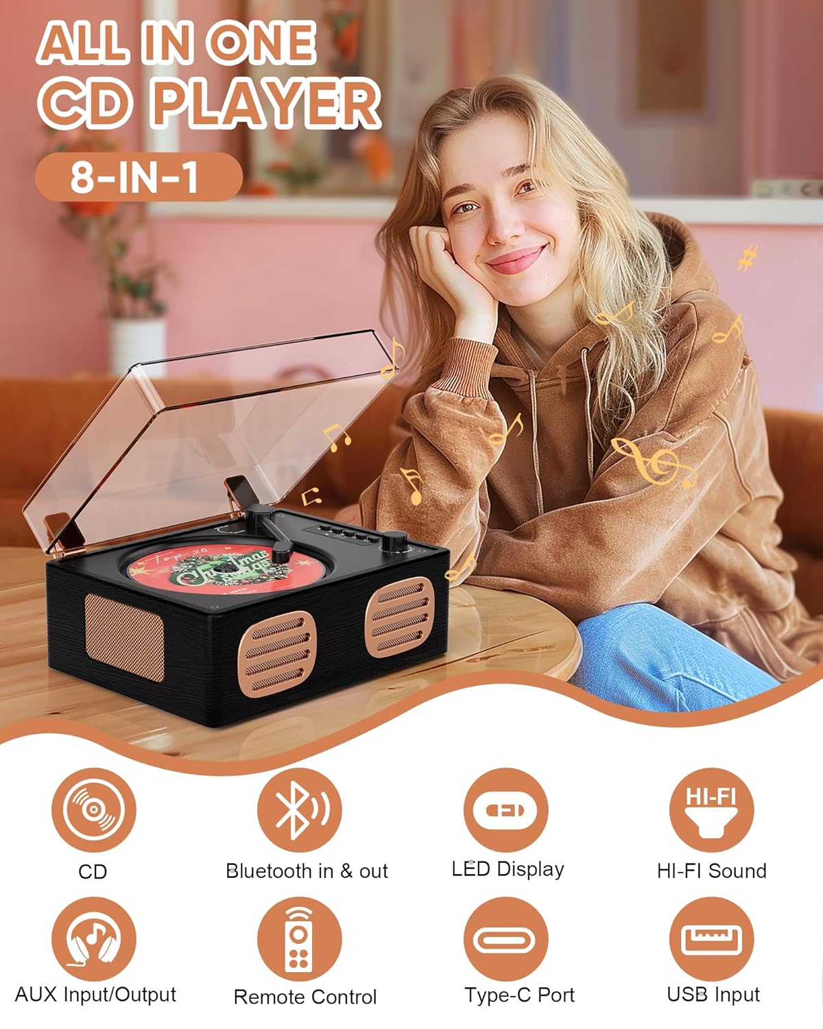 Compact Size & Retro Style: The compact dimensions of the vintage CD player (8x6x4 inches) make it an ideal choice for those seeking a portable audio solution. The pink CD player boasts retro styling and exquisite packaging. This item is ideal for children studying at home, as well as for older people who enjoy listening to music. It is also a practical gift for use at a friend’s party.