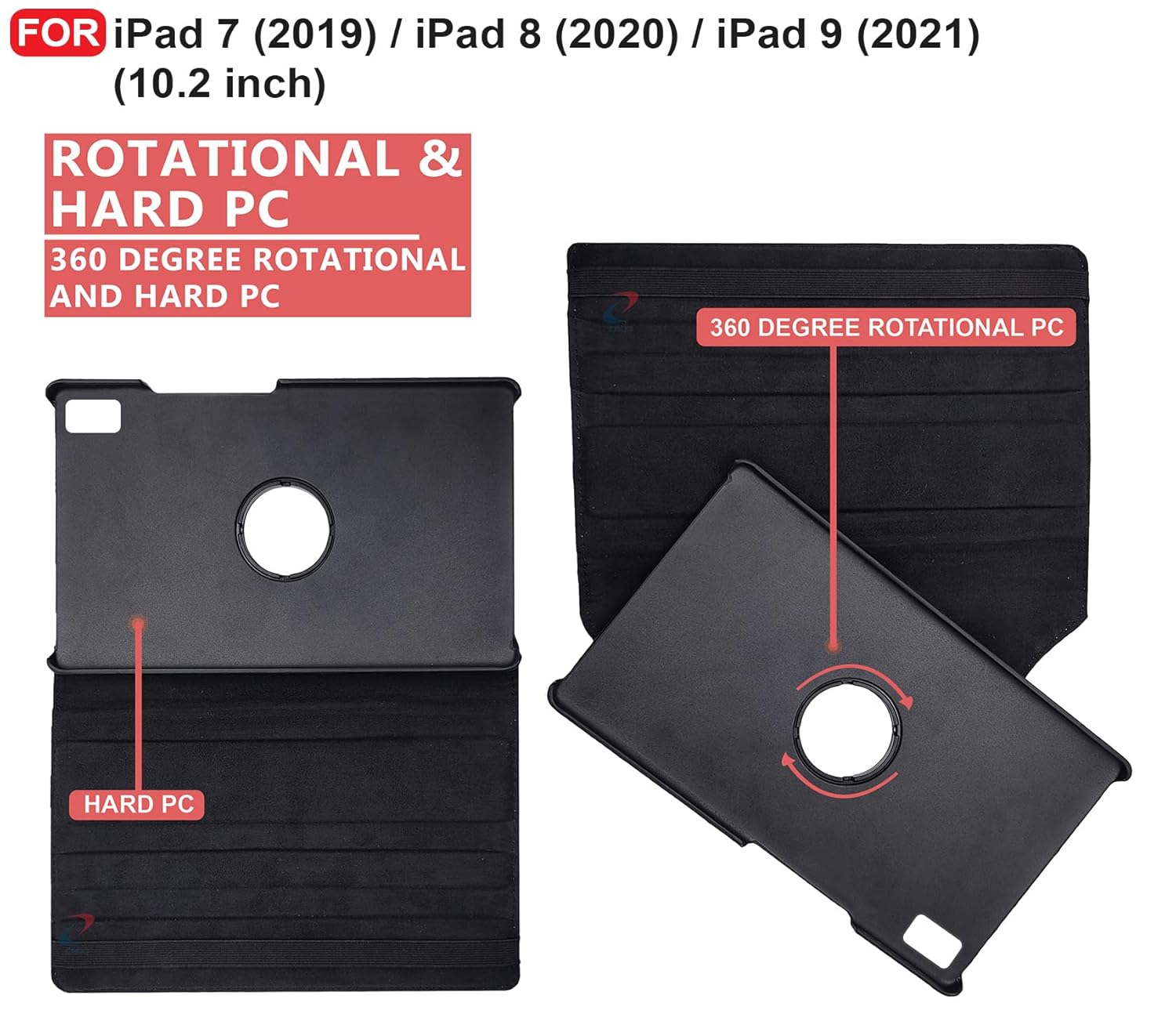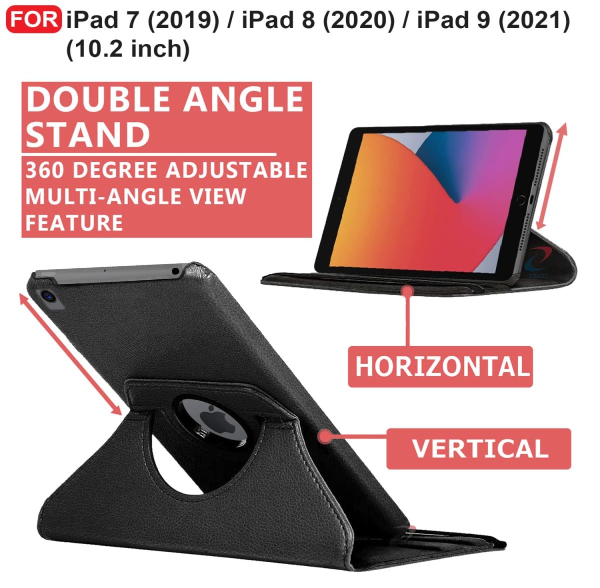 CEDO iPad 7 (2019) / iPad 8 (2020) / iPad 9 (2021) 10.2 inch Flip Cover | Leather Finish | 360 Degree Rotate Flip Cover | Shockproof Back Case for iPad 7 / iPad 8 / iPad 9 (10.2in) (Black)