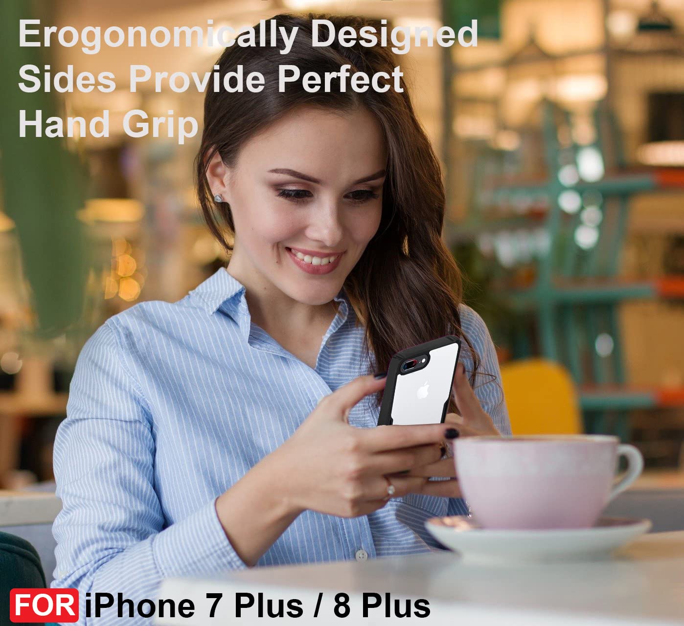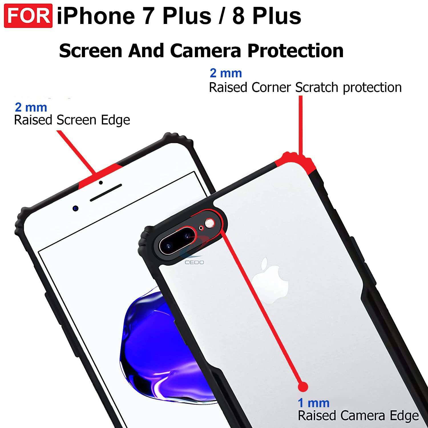 CEDO iPhone 7+ Plus / 8+ Plus (4G) Back Case Cover | Camera Protection Shockproof Bumper-Edge | Acrylic Crystal Clear 360 Degree Protection TPU+PC | Transparent Eagle Back Case Cover (Black)