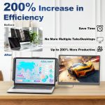 🟣【Boost Efficiency to 200%】Cenerius dual laptop screen extender supports extended and mirrored modes. It can open multiple windows, allowing you to work, have video meetings, watch movies, or play games on different screens without switching back and forth on a single laptop screen. The multifunctional adjustment button offers precise control of display settings. It’s suitable for various scenarios like working from home, business travel, video conferences, and business presentations.