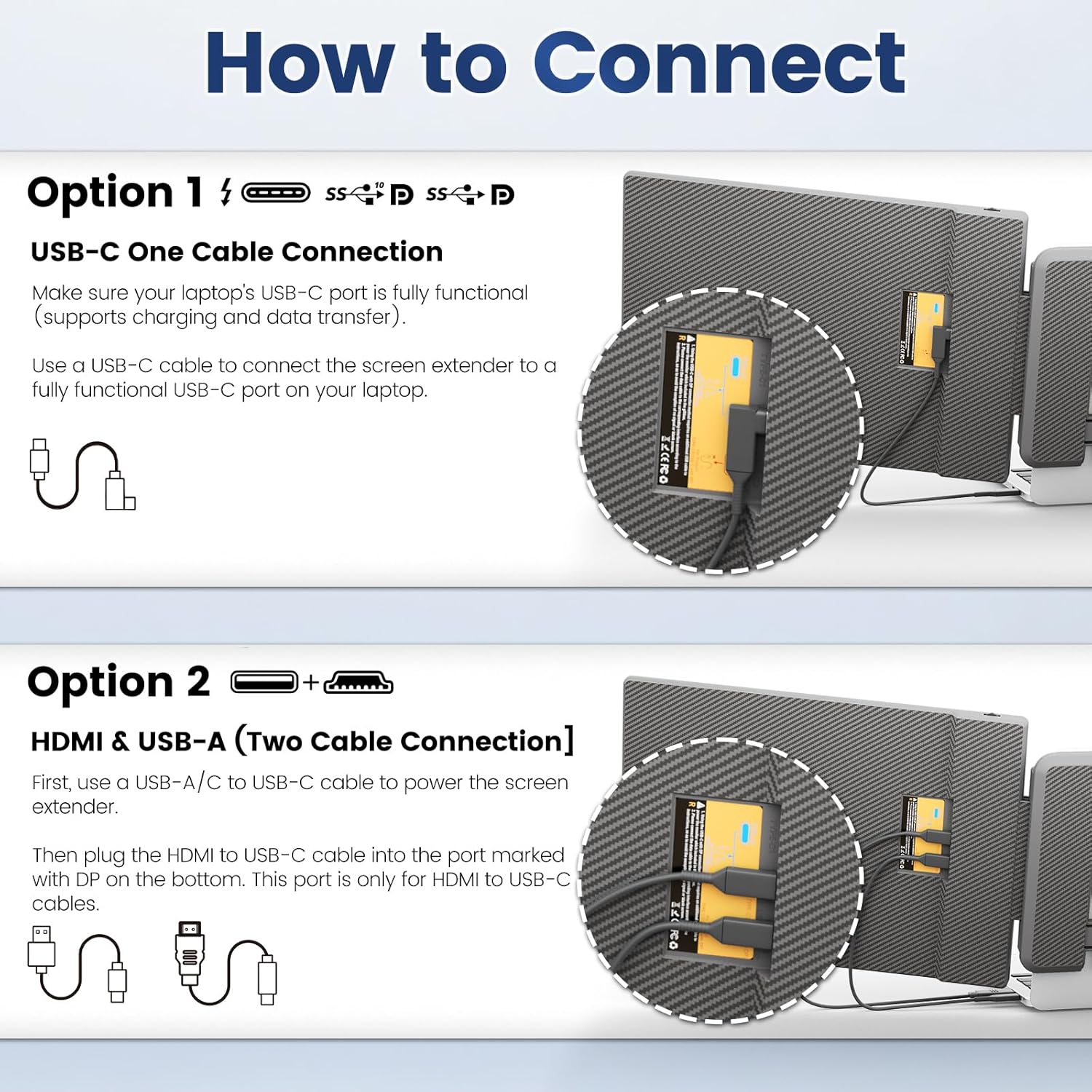 🟠【Connection Instructions】 The Cenerius 2k Laptop Screen Extender comes with all the cables you need (1 Type-C cable, 1 USB-A to USB-C cable, and 1 HDMI cable). If your computer has a fully functional Type-C port, you only need a Type-C to Type-C cable to connect to the monitor. If your computer’s Type-C port only provides power, you’ll need to connect a Type-C to Type-C cable and use an additional HDMI cable to connect to the monitor. No drivers are required.