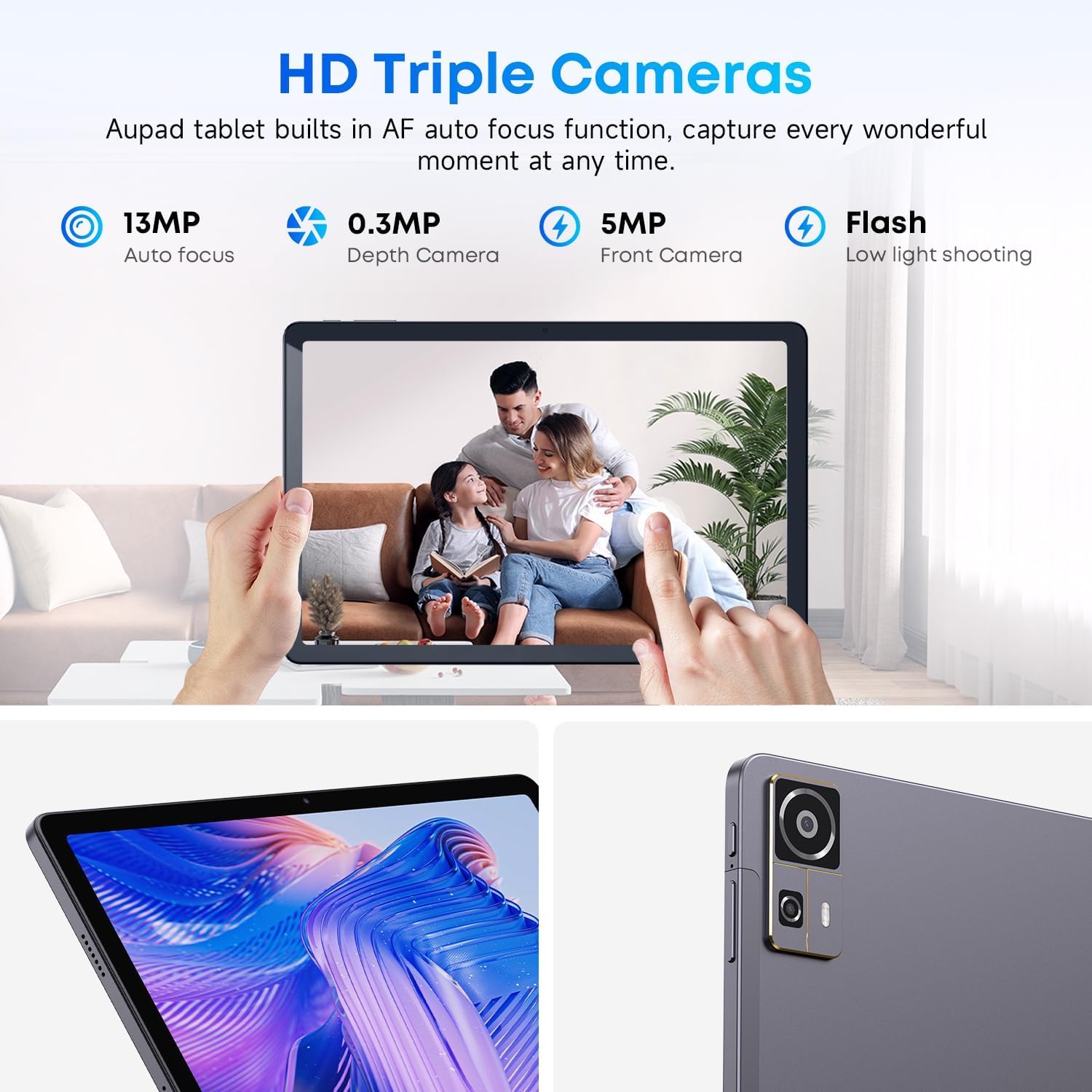 【Massive Storage】This Android 14 tablet comes with 8GB RAM 128GB ROM and maximun 1TB TF card (not included) expandable, you can store your favorite games, files, photos, videos, providing you with ample storage and smooth speed. Aupad tablet also pre-installed Google Play Store, you can download any needed Apps such as Netflix, Facebook, Twitter, Youtube, etc.