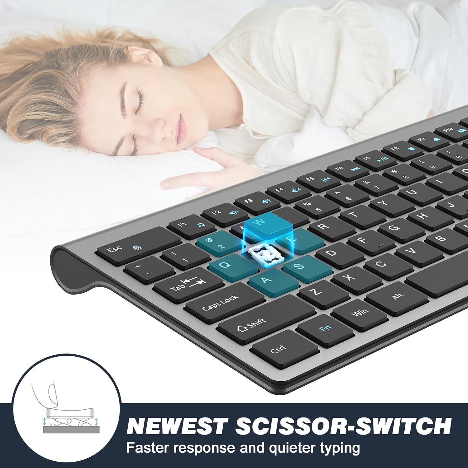 【Less Noise & Professional Office Keyboard】cimetech wireless keyboard adopts Interior Scissor Design that eliminates the annoying button clicking sound of the Heavy Crater Keyboard on the market (Tips: The Interior Scissor Design Keyboard is superior to the Heavy Crater Keyboard). Additionally, smooth and well-spaced square keys make typing a breeze and provide you with a quiet office experience