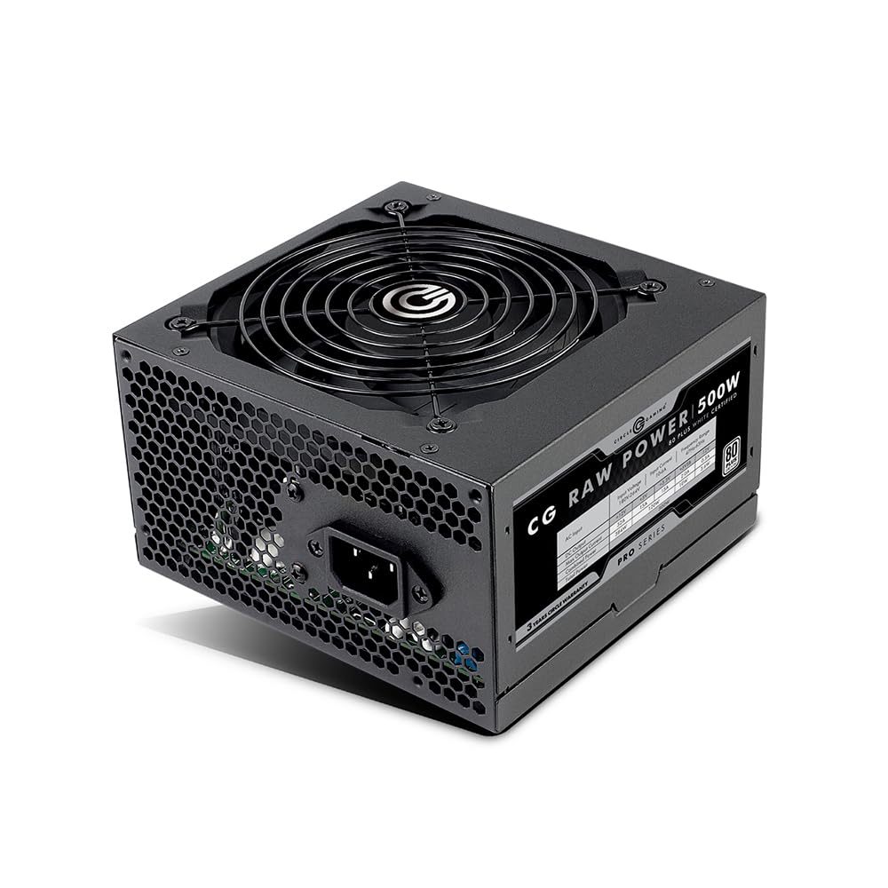 Circle CG RAW Power 500 WATTS Gaming Power Supply/PSU – Non-Modular | 80 Plus White Certified | 120mm Fan | with Active PFC, Flat Black Cables | 500 Watt