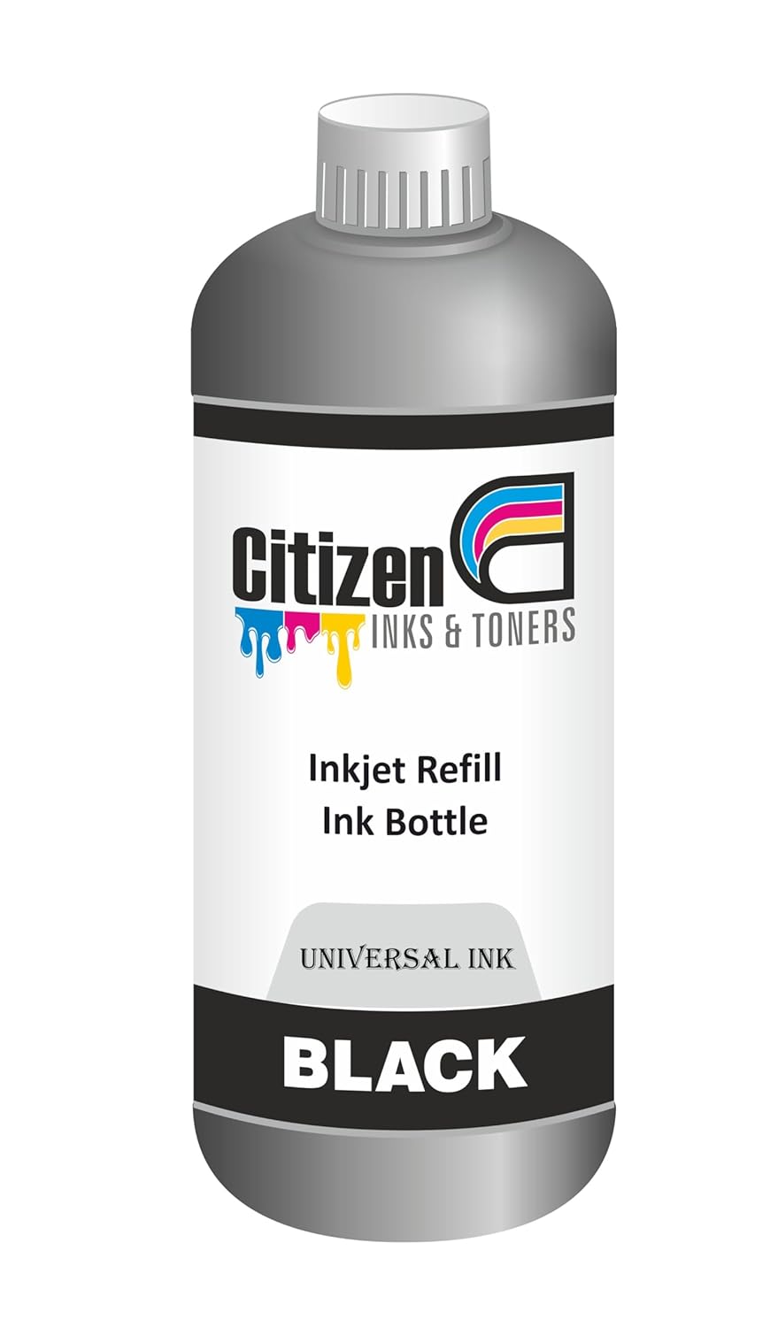 Citizen INKS & TONERS Universal Refill Ink for Ink Cartridge Refilling | Compatible for All Inkjet Printers | Perfect Vibrant Shades | High Page Yeild,1000ml (Black Ink 1 LTR Pack)