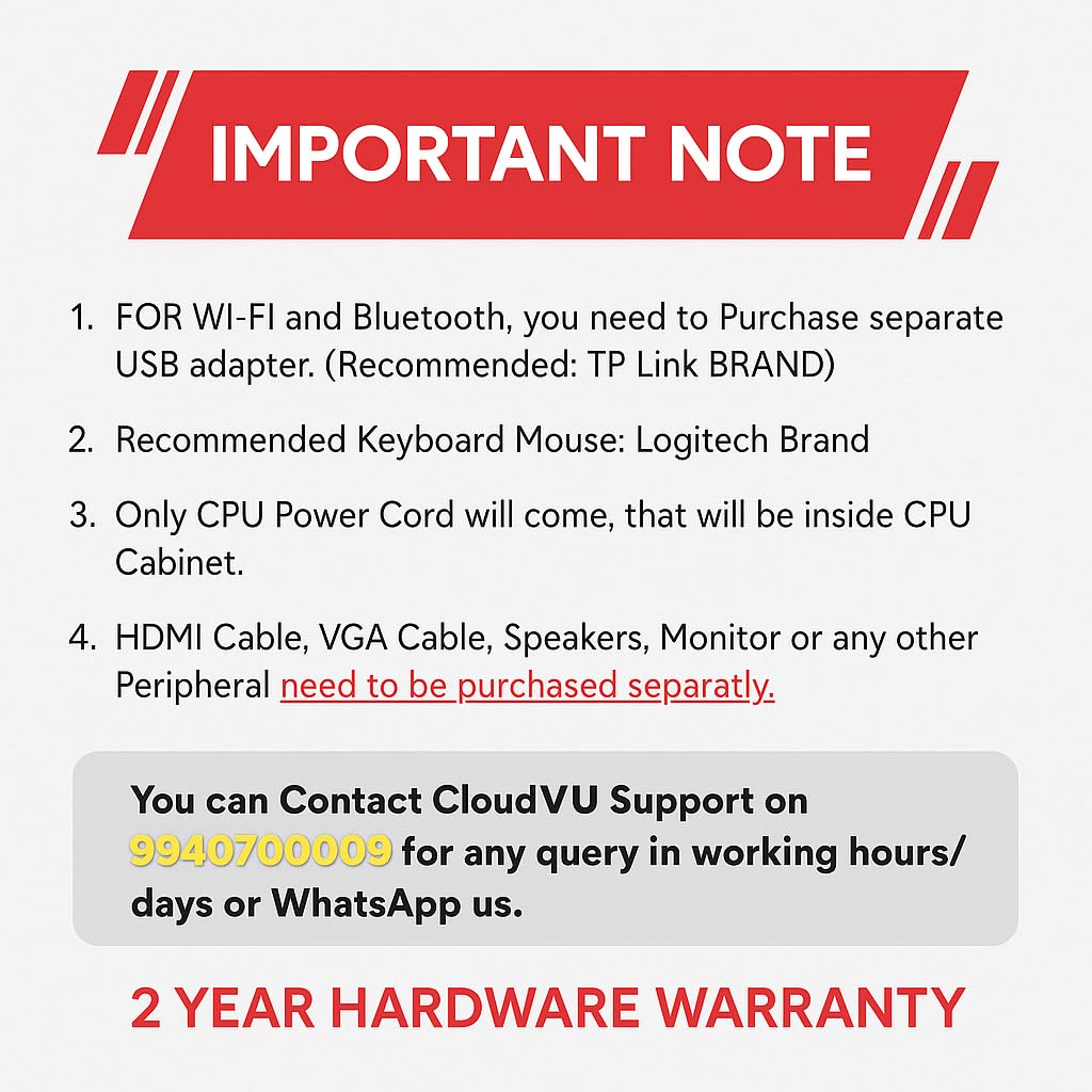 Desktop PC for Home || All in one desktop pc || desktop computer || Tower PC || inter Core i7 computer || Computer for office || Computer for Home || Desktop workstation || Workstation PC 1) CloudVU’s Core i7 Desktop Computer is the perfect blend of power, reliability, and affordability — purpose-built for office tasks, home, office and editing Use. Engineered with performance in mind, this PC delivers exceptional speed and responsiveness at an unbeatable value. 2) Built to Last – Backed by a 2-year warranty, the CloudVU Tower PC guarantees peace of mind and long-term reliability. 3) Upgrade-Ready Architecture – Built with future expansion in mind, this desktop supports both graphics card and storage upgrades, giving users the flexibility to enhance performance for advanced gaming, professional editing, or increased storage needs. It’s a smart investment that adapts as your demands grow. 4) Tested for Reliability – Rigorously stress-tested to ensure durability, stability, and consistent performance, making it the ideal solution for anyone seeking a cost-effective yet high-quality computing experience. 5) Smart Investment – Whether you’re a student, gamer, content creator, or office professional, this desktop evolves with your needs — making it the perfect long-term upgradeable PC.