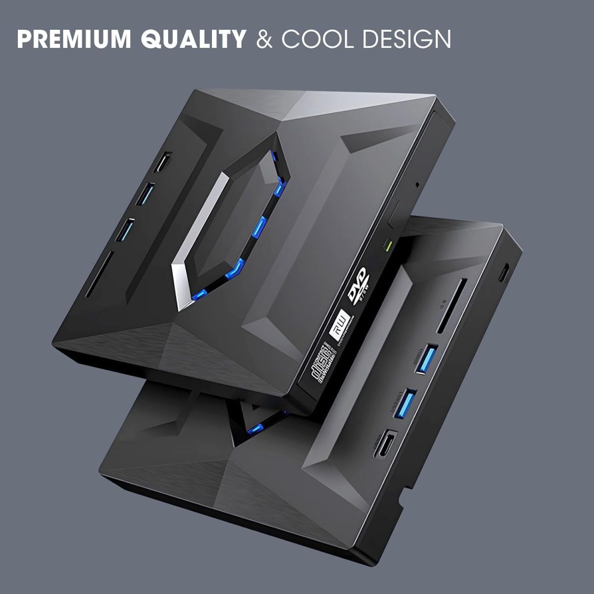 CLUSPEX External CD DVD Drive CD/DVD-ROM Burner Player with USB 3.0/2.0/ USB-C/SD Card Reader, Portable CD/DVD ROM +/-RW Optical Disc Drive for Laptop PC Mac Windows 11/10/8/7 Linux Computer
