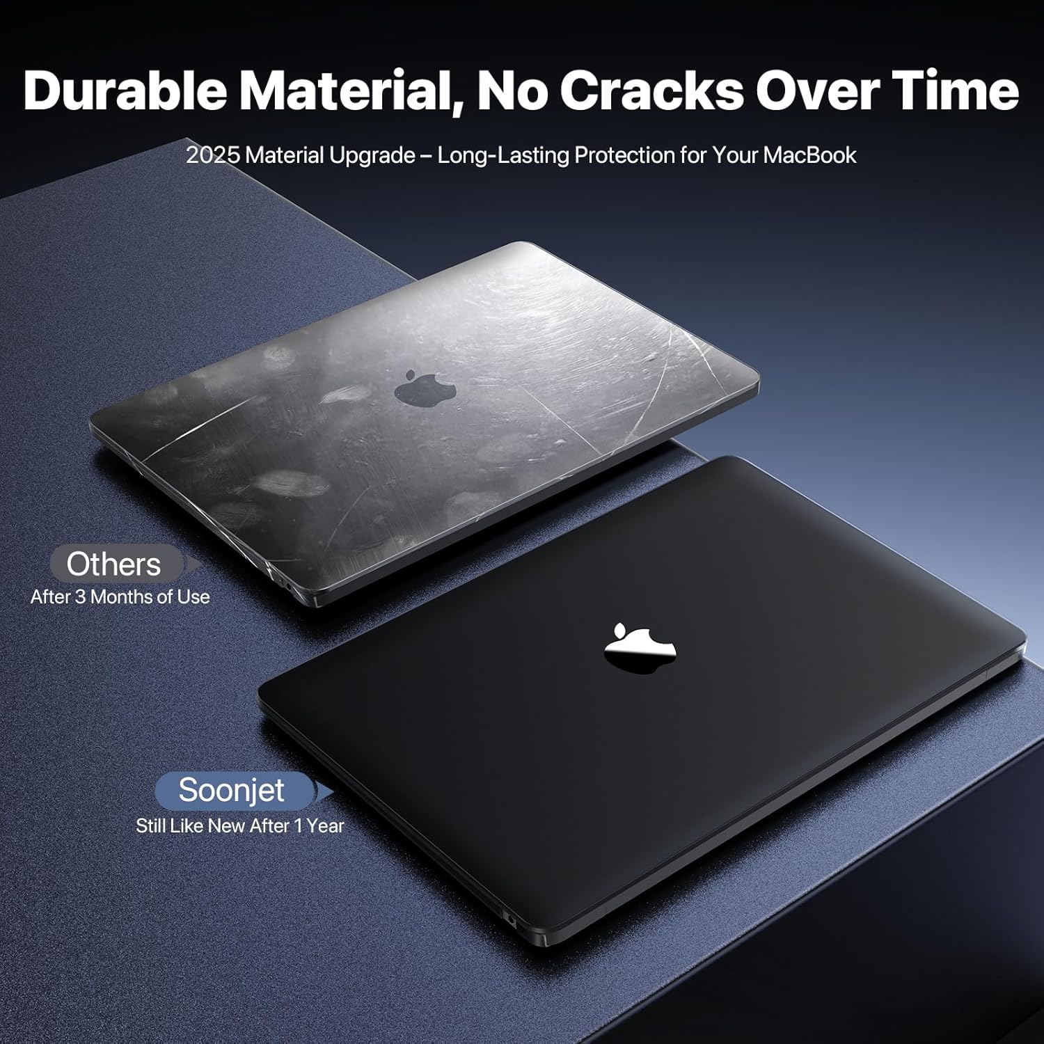 Premium Material, Built to Last: Due to the multidirectional stress and stress-concentration at the corners, cheap cases on the market often crack spontaneously within 1-2 months. To address this common issue, soonjet has upgraded to a composite PC material with 200% enhanced hardness, providing long-lasting scratch resistance and slim protection