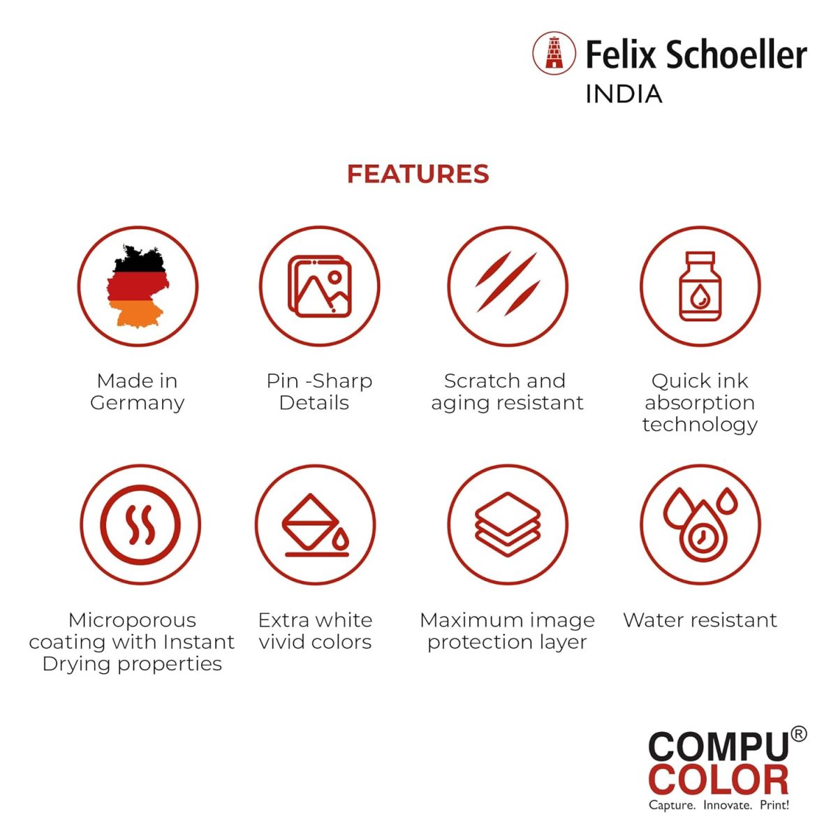 COMPUCOLOR Resin Coated Glossy Photo Paper 4×6 inches (101.6×152.4mm) 250 GSM for Inkjet printers. Perfect Media for High Quality Digital Prints Made in Germany