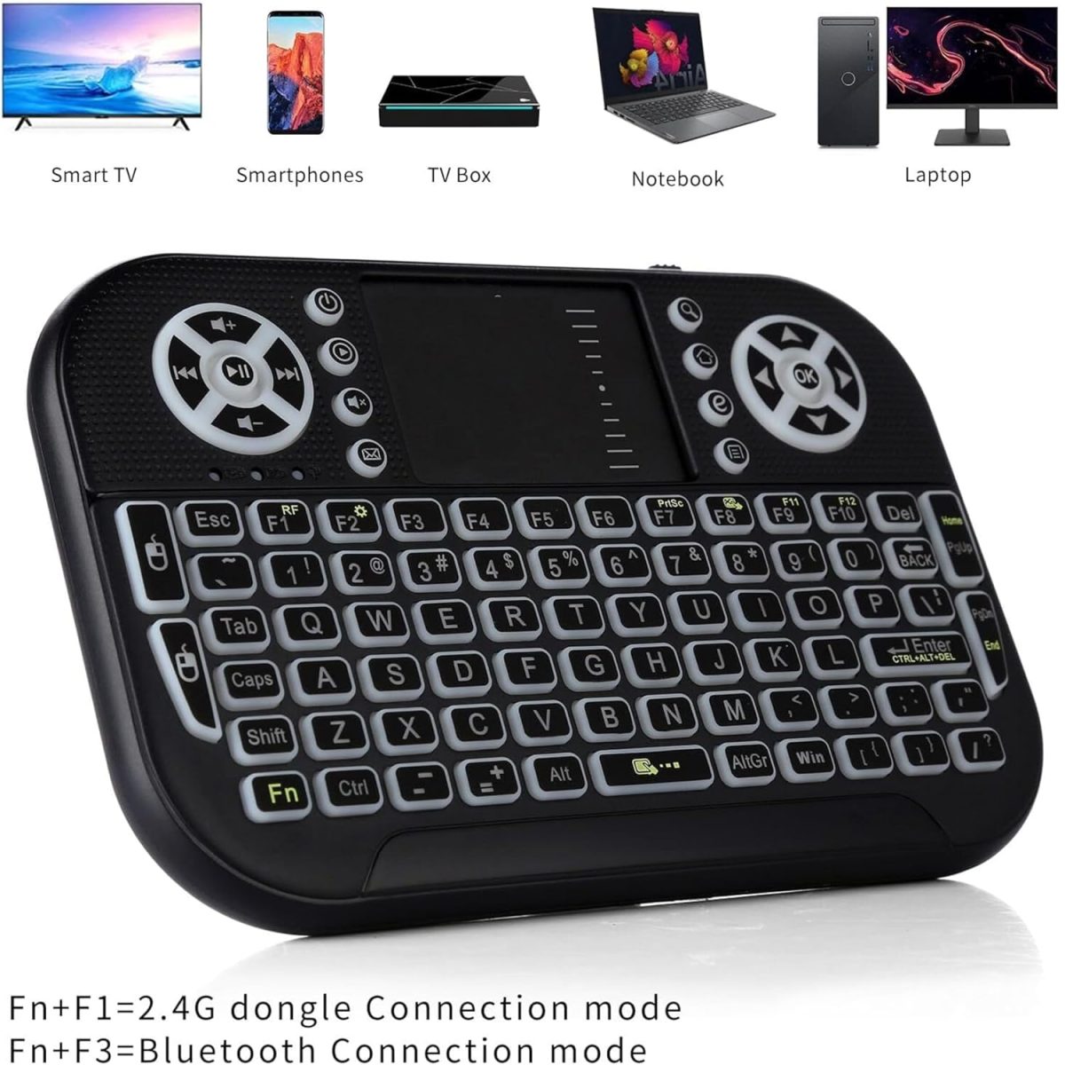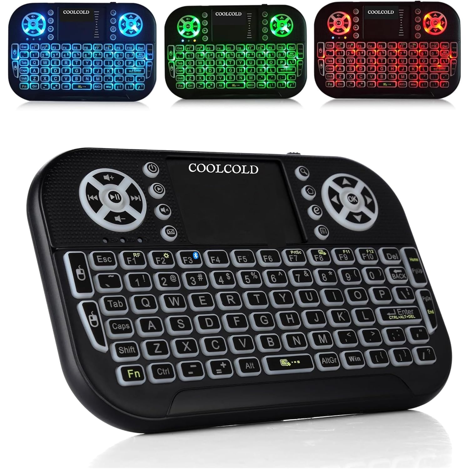 COOLCOLD Mini Wireless Keyboard with Touchpad | Backlit 2.4G & Bluetooth Portable Remote Control for Smart TV, Fire TV Stick, Android TV Box, PC, Laptop, Windows, Mac, Tablet & Smartphone (Black)