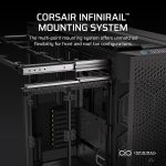 Corsair InfiniRail Fan Bracket System – This aluminum multi-point mounting system provides unparalleled flexibility in front and top fan configuration. Simply slide the rail to mount 120mm and 140mm fans wherever you want, ensuring targeted airflow without fixed vertical mounting constraints.