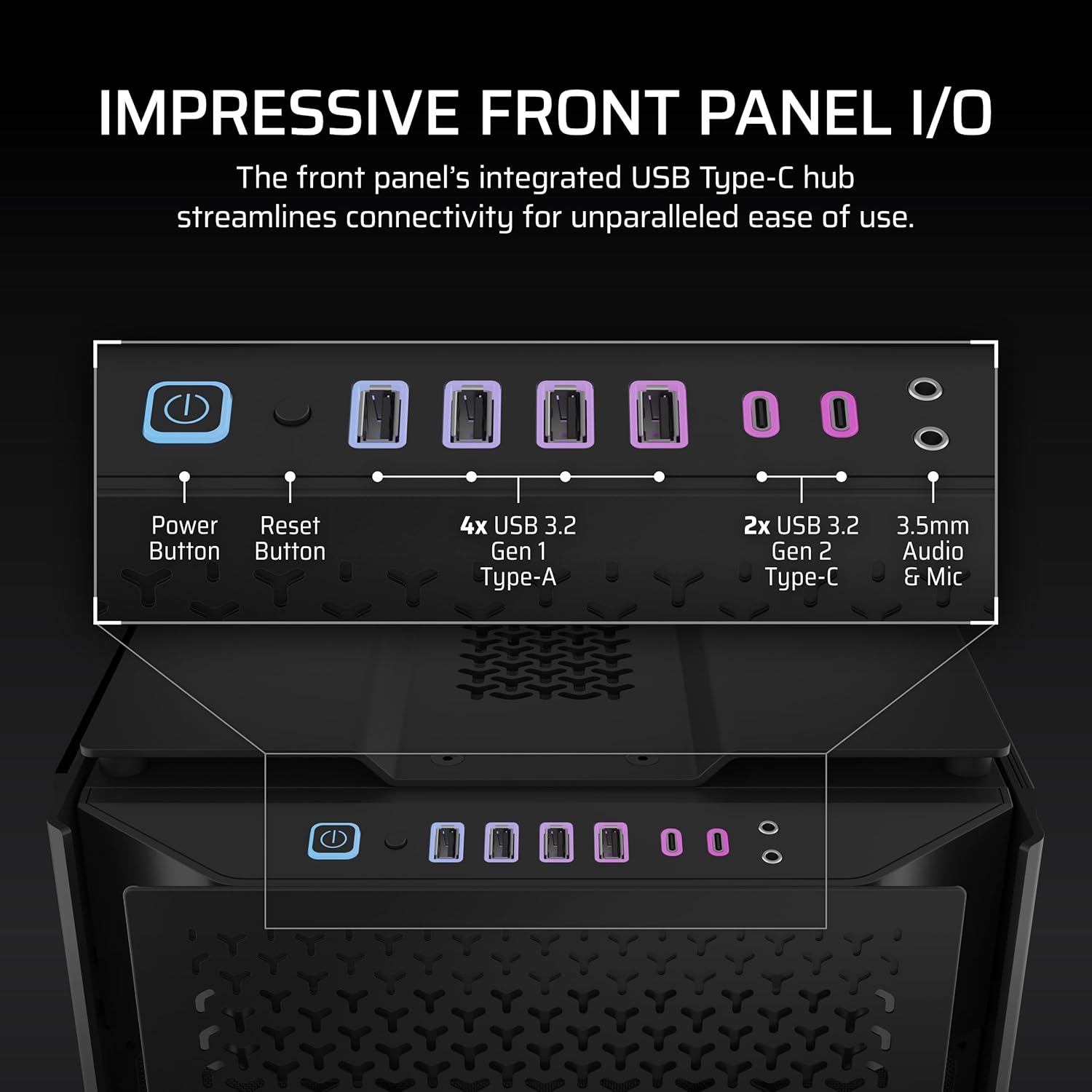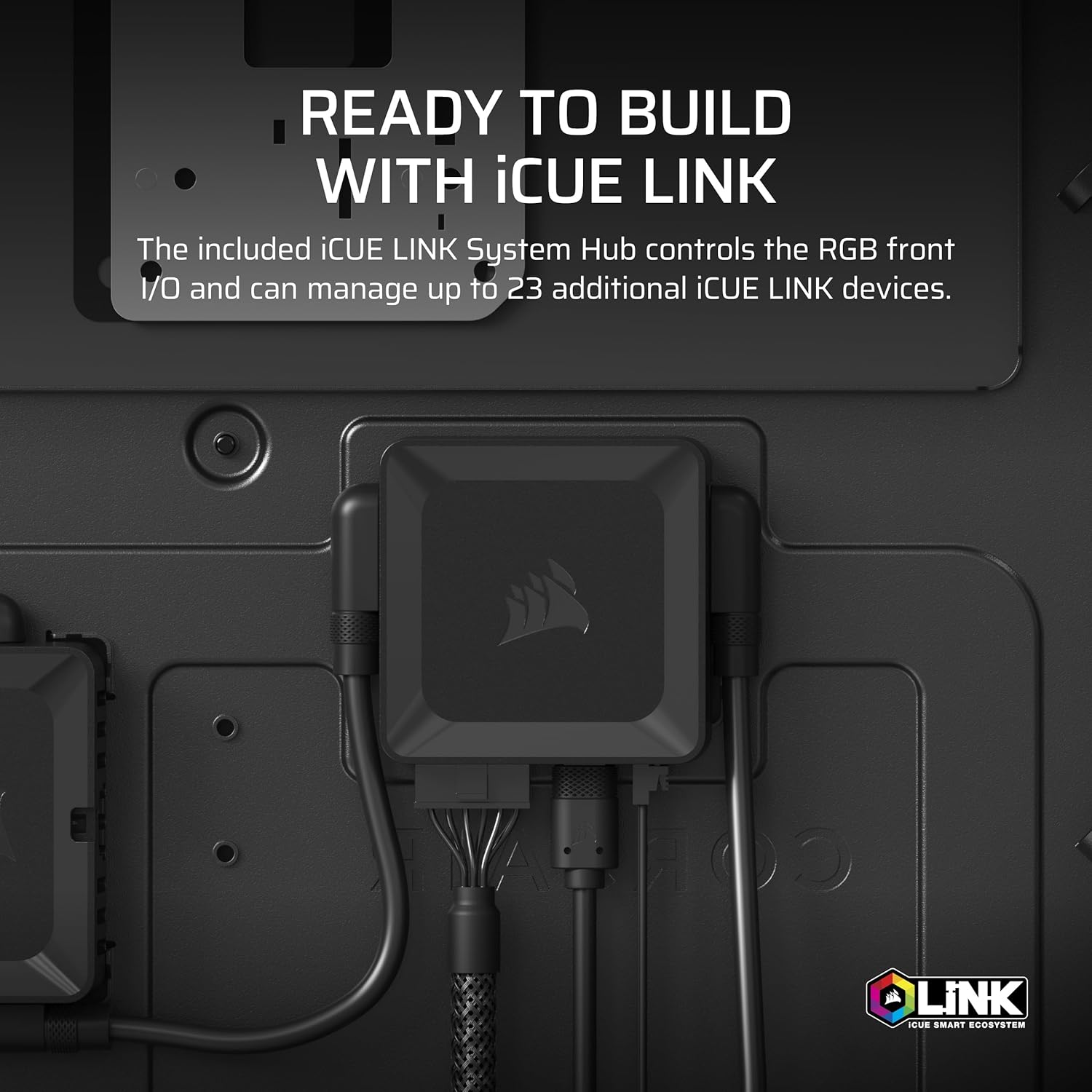 Turnkey mounting with iCUE LINK: An included iCUE LINK system hub controls RGB front-end I/O and is ready to expand your ecosystem by managing up to 13 additional iCUE LINK devices, ranging from high-end Hydro X Series fans and coolers.