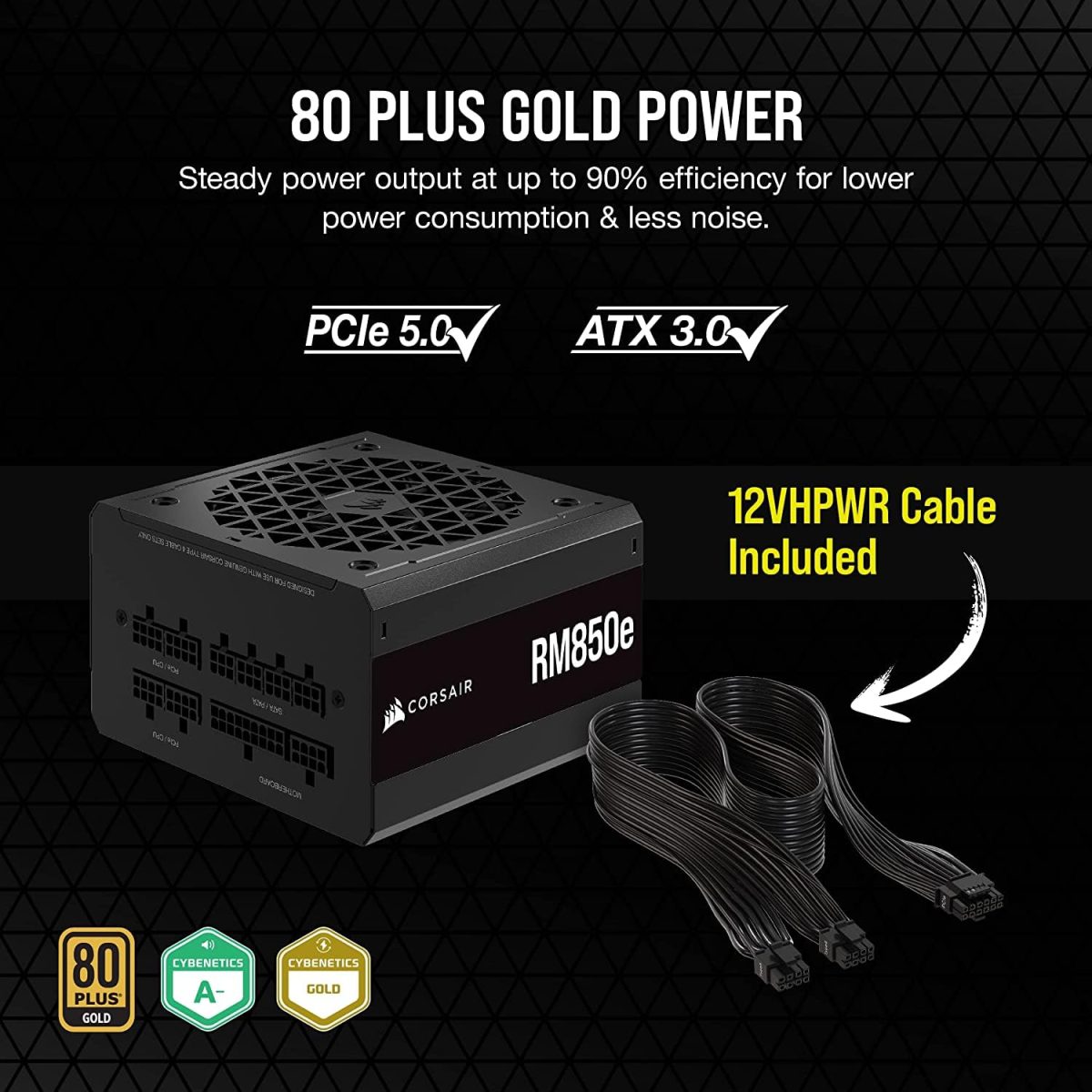 80 PLUS GOLD-CERTIFIED : Steady power output at up to 90% efficiency, and Cybenetics Platinum certified for lower power consumption, less noise, and cooler temperatures.