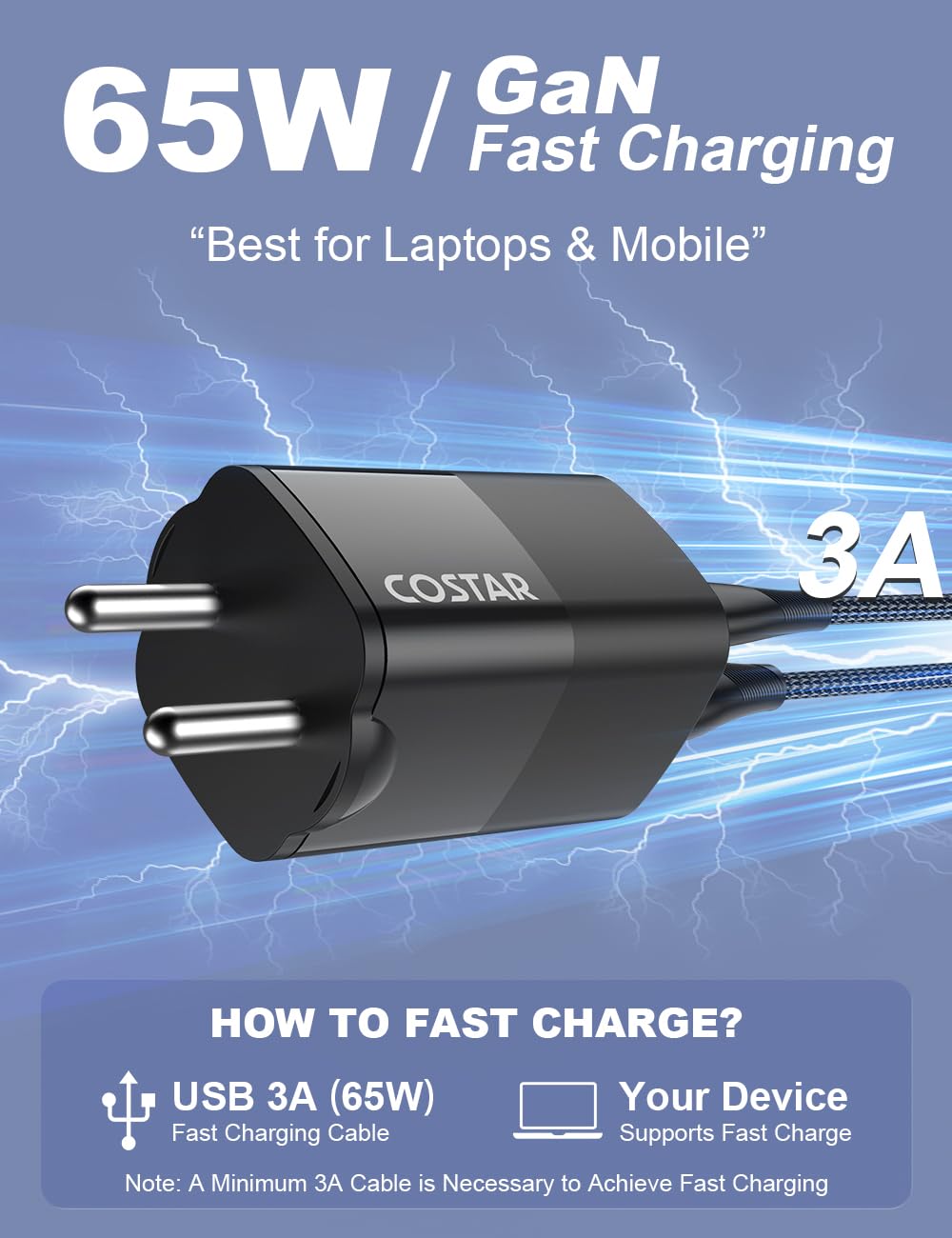 ✔【Note】Requires a minimum 3A or 5A data cable to support laptop charging. Ensure you have the appropriate cable to experience the full benefits of this gallium nitride fast charging technology.
