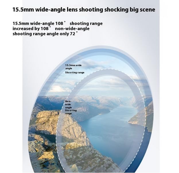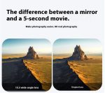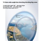3. Wide-angle lens: 15.5mm, 108-degree wide-angle. The shooting range is expanded to 108 degrees, while the non-wide-angle shooting range is 72 degrees. Adopts distortion-corrected optical design with high durability and scratch-resistant performance. When using the wide-angle lens, the horizontal field of view is expanded, allowing you to capture more subjects.