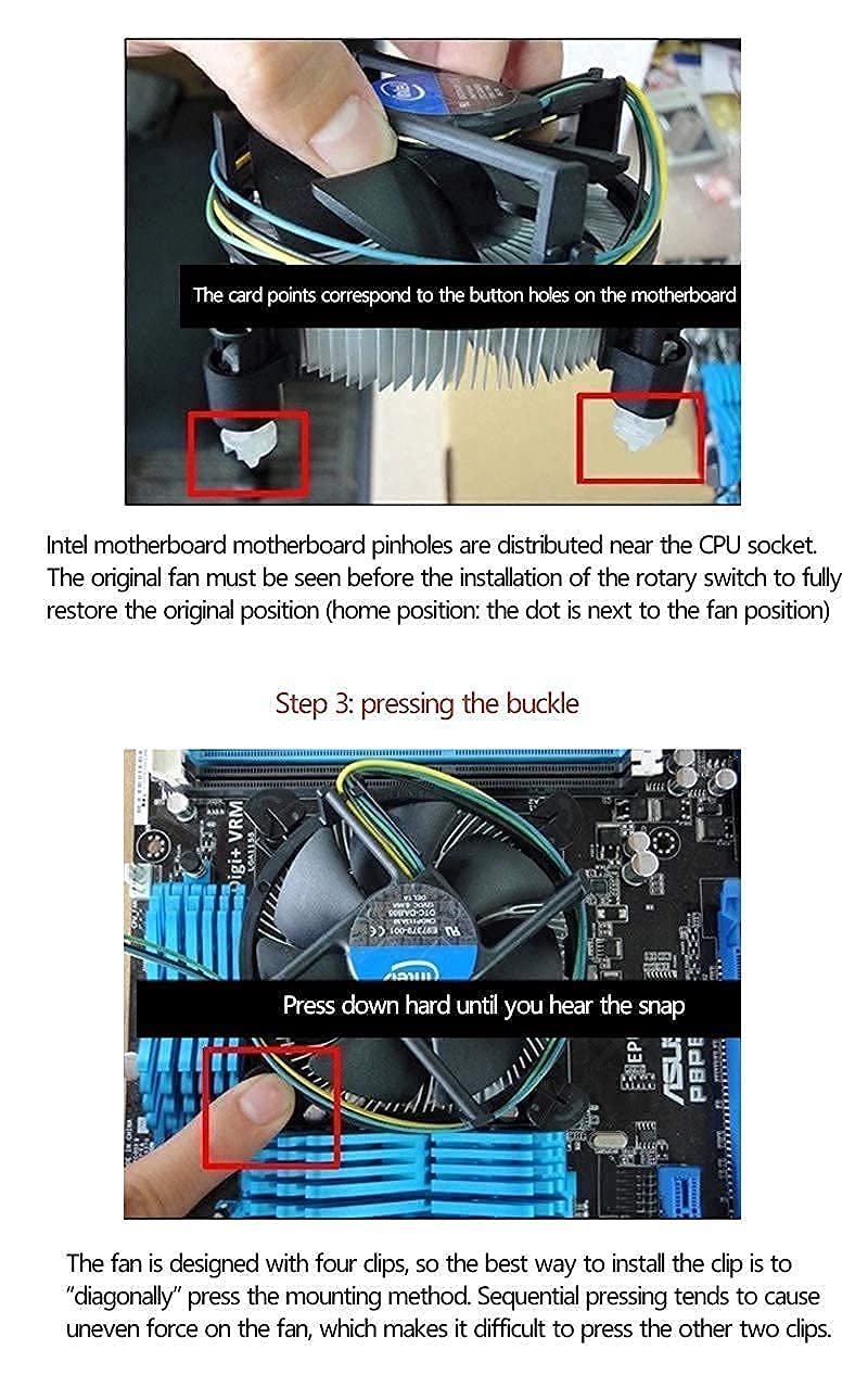 Aluminum heatsink Pre-applied thermal paste Easy and tool-free push pin installation.