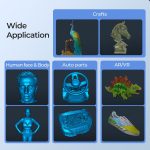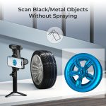 HIGH QUALITY & FAST SCANNING – Up to 0.1mm accuracy ensures better dimensional accuracy and captures more details;The built-in specific 3D imaging ASlC chip provides computing capability,enables fast scanning for medium and large objects, Without scanning spray, you can scan cars, carparts, tires and other black/metal objects to getthe desired model effect.