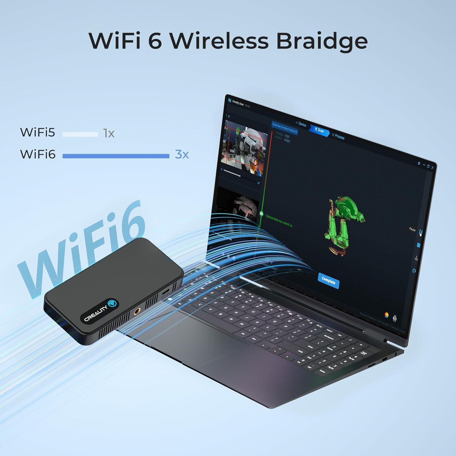 WIFI6 WIRELESS CONNECTION – Creality 3d scanner, using the most advanced WiFi6 high-speed wireless network, 3 times faster than WiFi5, it meets the transmission bandwidth required for high-precision scanning and improves the transmission efficiency, making data collection smoother
