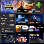 ✅【Smart Streaming | Android 13 | Built in Apps】: Stream Favorites: Watch the hottest new shows and blockbuster hits with access to 10,000+ apps and 800+ free channels on this 4K Support home theater projector