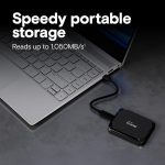 The Crucial X9 1TB Portable SSD (CT1000X9SSD902) provides high-performance storage with read speeds of up to 1050MB/s, allowing for quick and efficient transfers of large files, including high-resolution photos, 4K videos, and gaming data. With its 1TB storage capacity, this external SSD is perfect for professionals, content creators, and gamers who need ample storage for their growing digital libraries. Built for portability and durability, the Crucial X9 is compact and lightweight, making it easy to carry wherever you go. Its IP55-rated water and dust resistance and drop protection from up to 7.5 feet ensure that your data remains safe in even the toughest conditions, whether you’re traveling, working outdoors, or in harsh environments. The Crucial X9 is compatible with a wide range of devices, including PC, Mac, Android, and more, making it easy to transfer files across multiple platforms using USB-C connectivity. This combination of speed, capacity, and ruggedness makes the Crucial X9 1TB Portable SSD an excellent choice for users who need fast, reliable storage that can handle the demands of professional use and travel. High-speed Performance: Designed for casual gamers and everyday use, this external SSD with up to 1050MB/s accelerates large file transfers, media editing, and backup processes outperforming traditional hard drives Built to Last: Perfect for travel and all types of weather with IP55 water and dust resistance. Plus, it’s drop resistant up to 7.5 ft (2 meters). This portable drive is designed for durability and reliability wherever you go Broad Compatibility: External drive connects effortlessly with Windows, Mac, iPad Pro, Chromebooks, Android, Linux, PS4, PS5, and Xbox via USB-C and USB-A for easy and fast file transfers High-Capacity Storage: Store all your photos, videos, backups, and more with this compact 1TB SSD. It’s perfect for students, everyday users, and anyone needing secure and reliable storage for their files Bonus Software Included: Enjoy three months of Mylio Photos+, one month of Adobe Acrobat Pro, and Acronis True Image when you purchase and register your external drive