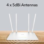 AC1200 Dual Band WiFi router with 4 10/100Mbps LAN ports, ideal for 100Mbps internet plan and allow you to directly connect your wired devices.