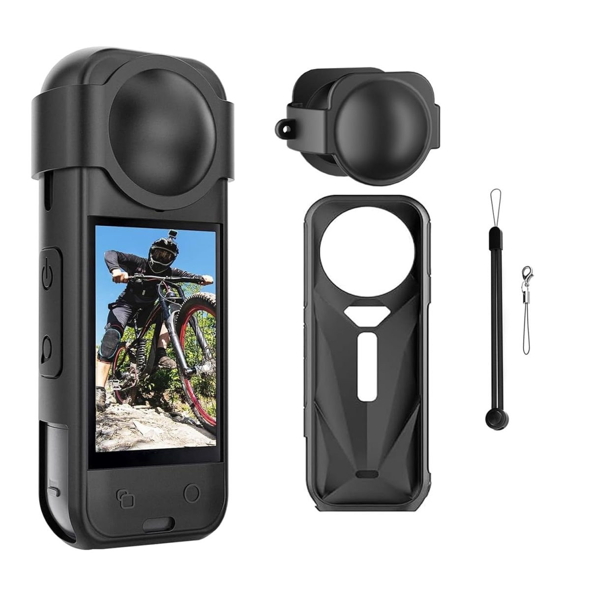 Special Customization: This premium silicone case for Insta360 X5 features a slim, custom-fit design that preserves the camera’s compact form while allowing easy accessory mounting. Constructed from durable, highly elastic silicone, it offers a soft-touch, fingerprint-resistant grip. The flat base ensures stability during use, and the package includes a lens cap and lanyard.