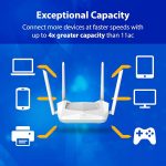 Create and customize a whole-home mesh WiFi experience. Devices automatically connect to the strongest bands as you move throughout the home. Additionally, four external high-performance antennas strengthen Wi-Fi reach and reliability.