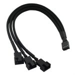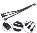 PWM Splitter Cable: Sleeved in Black Braiding With A 4 PIN Female Connector at One End and Splits to 3 Male Connectors at The Other End.