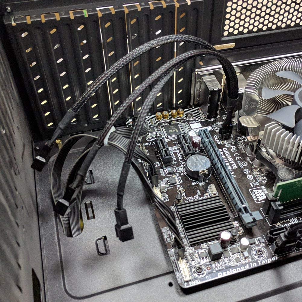 1 to 3 Ways Fan Cable Splitter: The Fan Splitter Connects 3 Computer Case Fans to A Single Motherboard Fan Header, Compatible With 4 PIN and 3 PIN PMW Fan Connector.