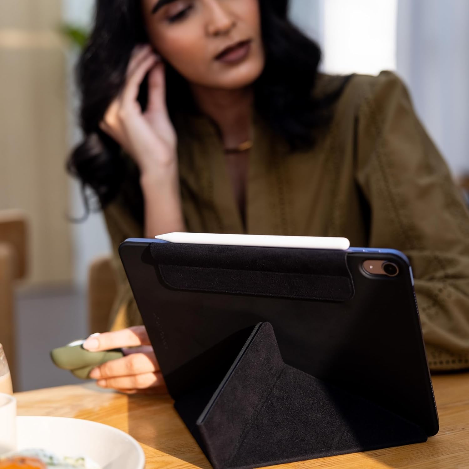Unfold Pleat iPad Case, a Y-fold, magnetic iPad case designed to elevate your iPad with 3 ideal viewing angles for your everyday binging, sketching, typing and attending FaceTime calls. The smart folio case offers dual-side protection and seamlessly snaps onto your iPad for convenience.