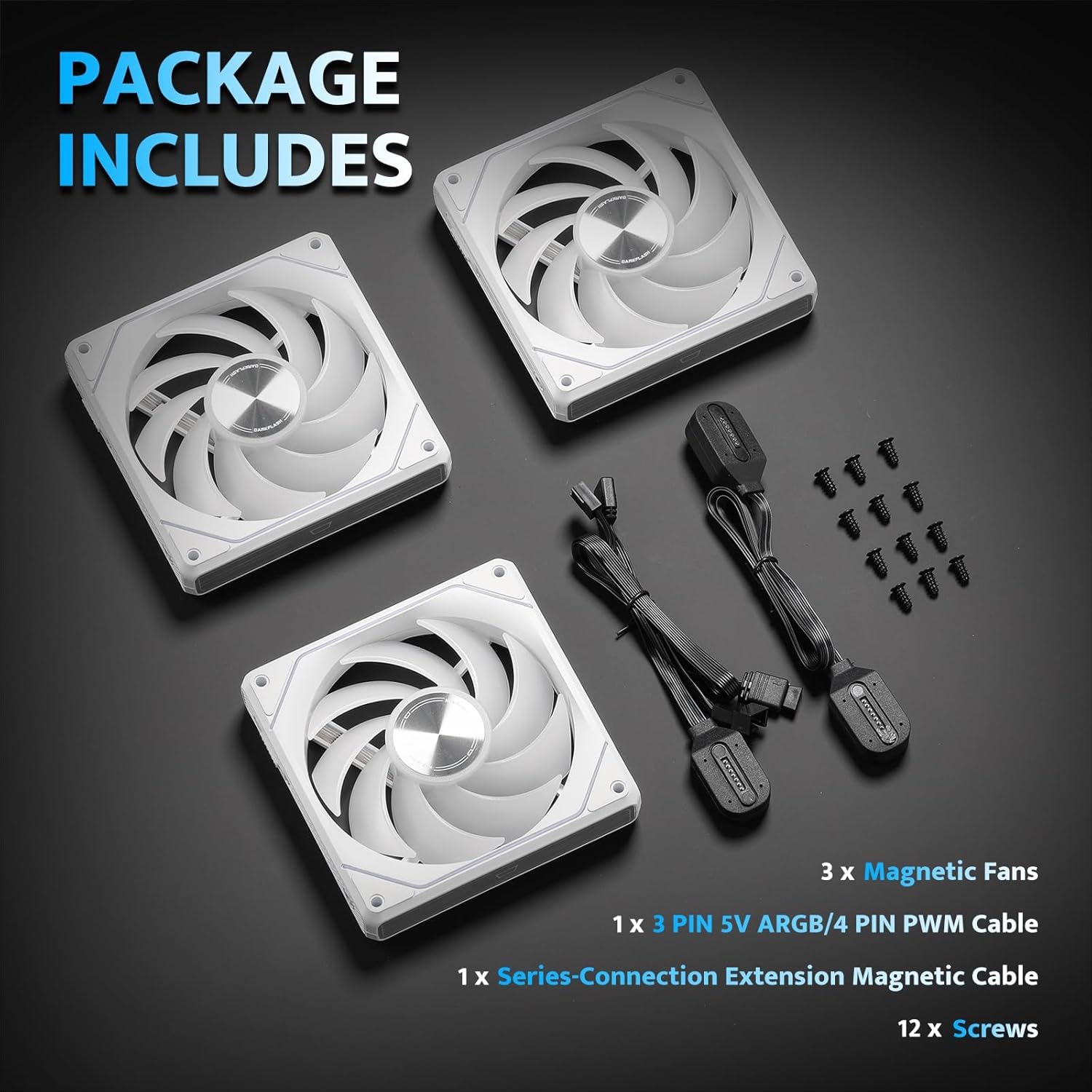 [Tool-Free Magnetic Installation] Say goodbye to screws and complicated setups. Our magnetic mounting system allows for quick, hassle-free installation, so you can spend less time building and more time enjoying your PC. Connect multiple fans with only one cable.