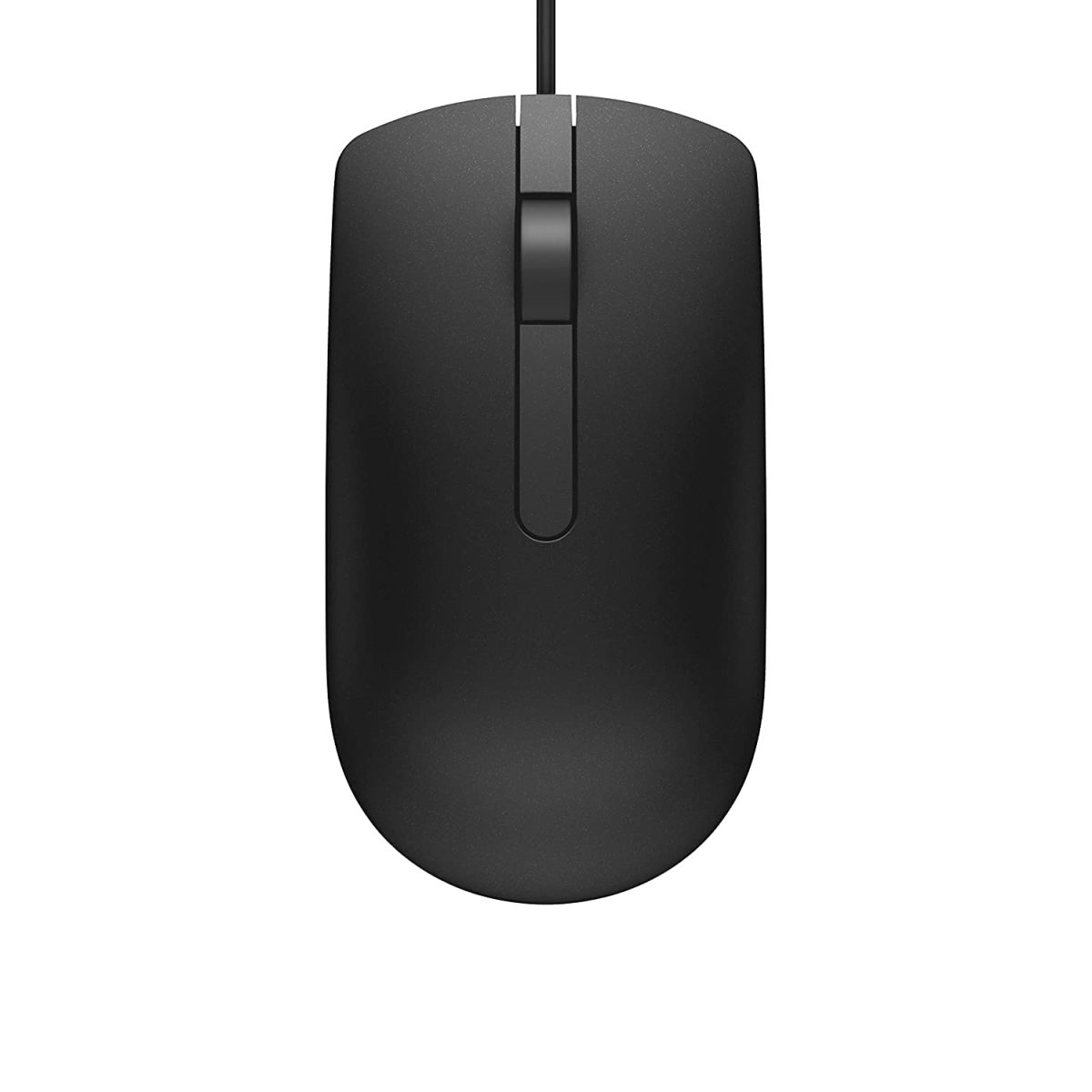 Dell MS116 Wired Optical Mouse – High Precision 1000DPI Sensor, USB Connectivity, Ergonomic Ambidextrous Design, Smooth Scrolling, Ideal for Office & Home Use – Black