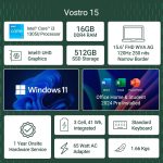 Dell Vostro, Intel Core i3 13th Gen – 1305U, 16GB DDR4 RAM, 512GB, FHD 15.6″/39.6 cm, Windows 11, Office H&S 2024, Carbon Grey, 1.66Kg, 120Hz 250 nits Narrow Border Display, Intel UHD Graphics Laptop