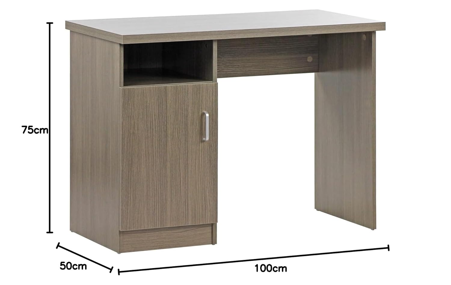 Side door with double shelf to store even larger objects or organize it to store books or any desk accessories.