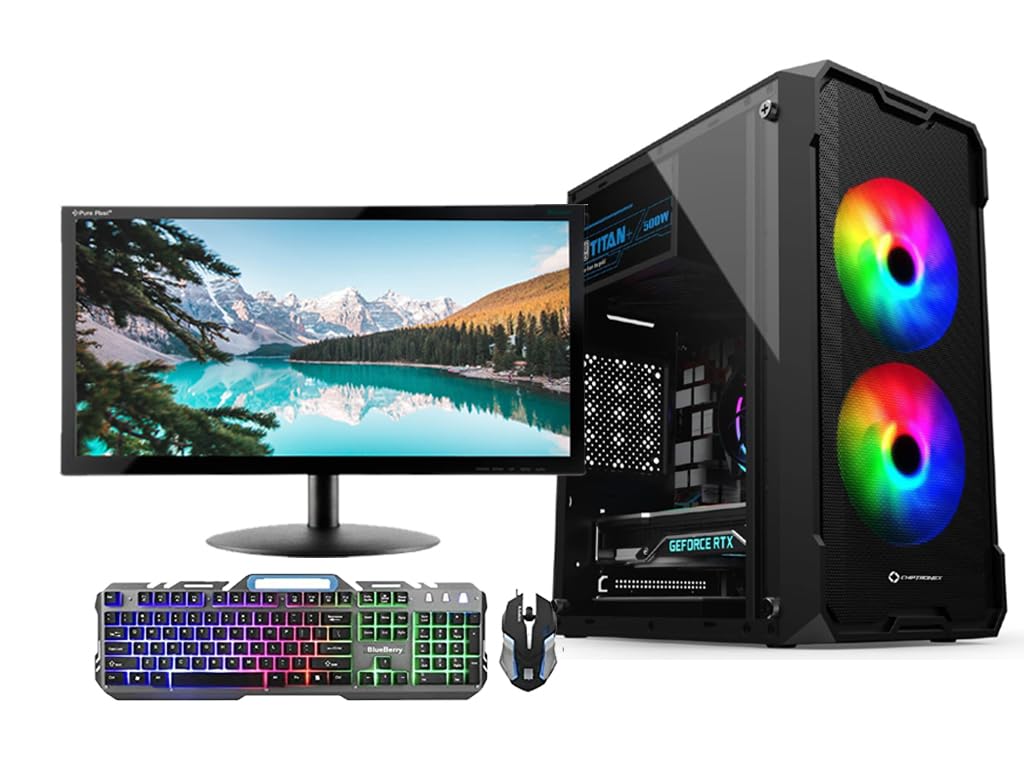 Gaming Essentials: Includes a gaming keyboard and mouse with customisable RGB lighting for an enhanced gaming setup.