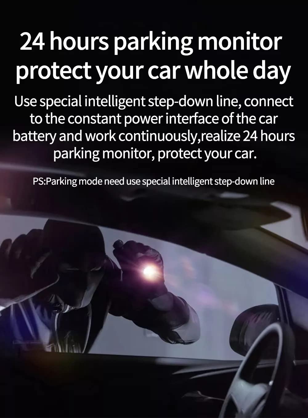 This car DVR features a 10-inch touch IPS screen, providing a larger display with touch functionality for convenient operation. The screen is 2.5D curved glass design, scratch-resistant, anti-glare, and anti-fingerprint, making it durable and easy to use. Additionally, it has a high resolution of 4K Ultra HD which helps to capture vital details like license plates, driver actions and road features. The device is equipped with dual cameras that allow for simultaneous recording from two different angles, giving you a more comprehensive view of the road. The DVR also has a real-time display reverse parking view with a smart rear view angle switch between driving and parking. It automatically switches to the rear view camera when parking to provide a closer backup image. It has a loop recording feature which, when turned on, overwrites the oldest video with the newly recorded video once the memory card is full. However, videos captured under special conditions, such as the G-sensor or parking monitoring, will not be overwritten. The G-sensor is triggered in the event of an impact or emergency, causing the DVR to immediately record and lock the video. The device also has a motion detection function that starts recording when it detects a moving object, and stops recording when there is no movement. For added security, the car DVR has a parking monitor function that can be activated by connecting it to the car’s battery using the hardwire Kit (not Included). This ensures that the device continues to operate even when the car is parked, and if someone damages the car, the G-sensor will be triggered and the situation will be recorded.