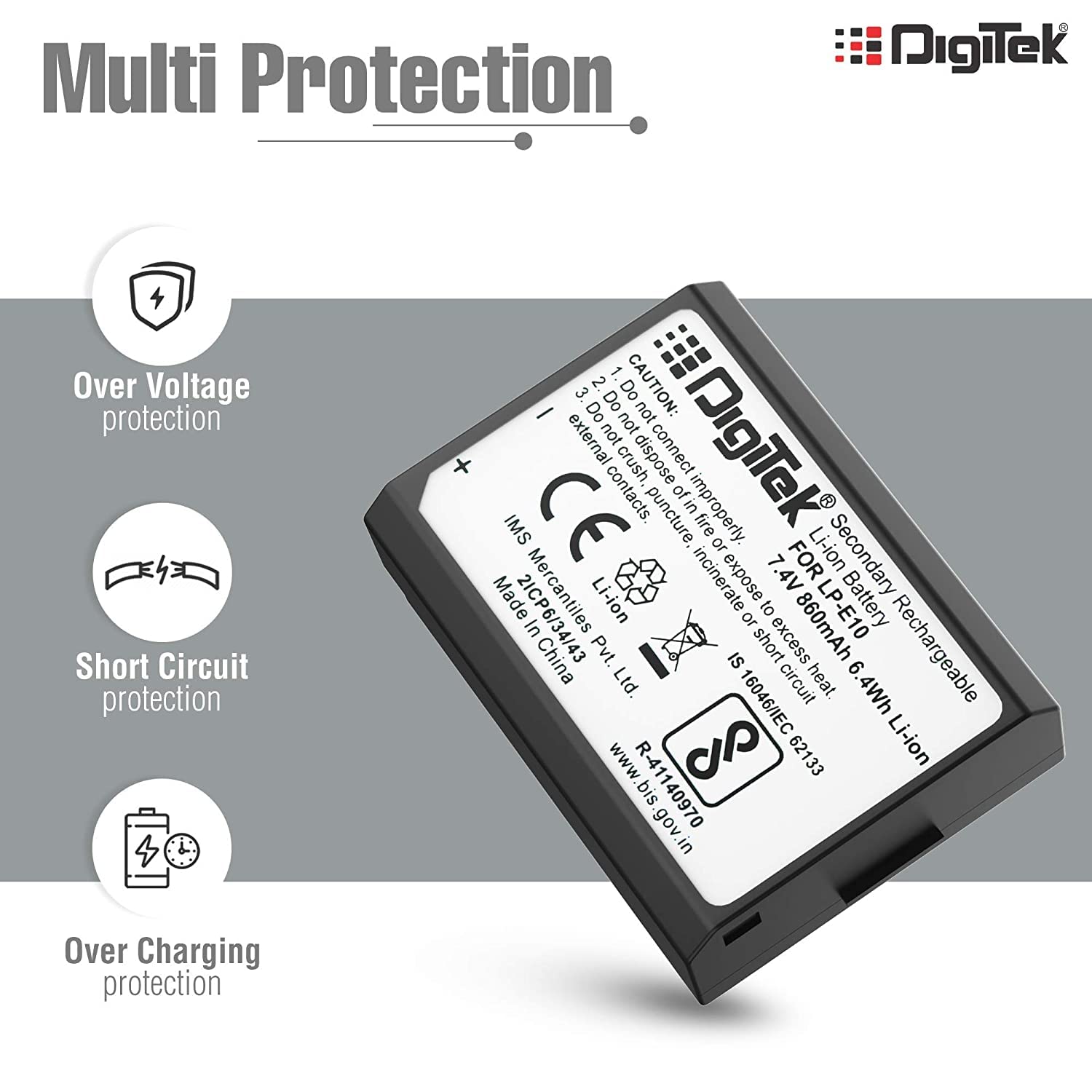 High-Quality Rechargeable Battery: DIGITEK LP E10 Lithium-ion battery provides a reliable and long-lasting power source for your camera, ensuring you never miss a shot.