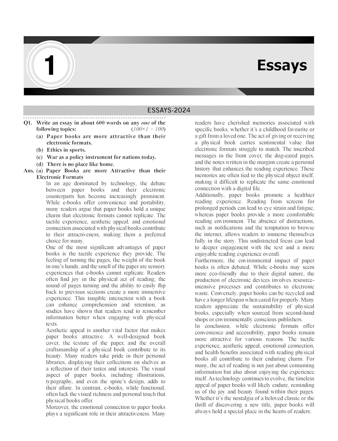 📚 Part 2 – Paper I (Essay) consists of 92 Essays written in adherence to the Word Limits. The essays are classified into various categories (Topics).