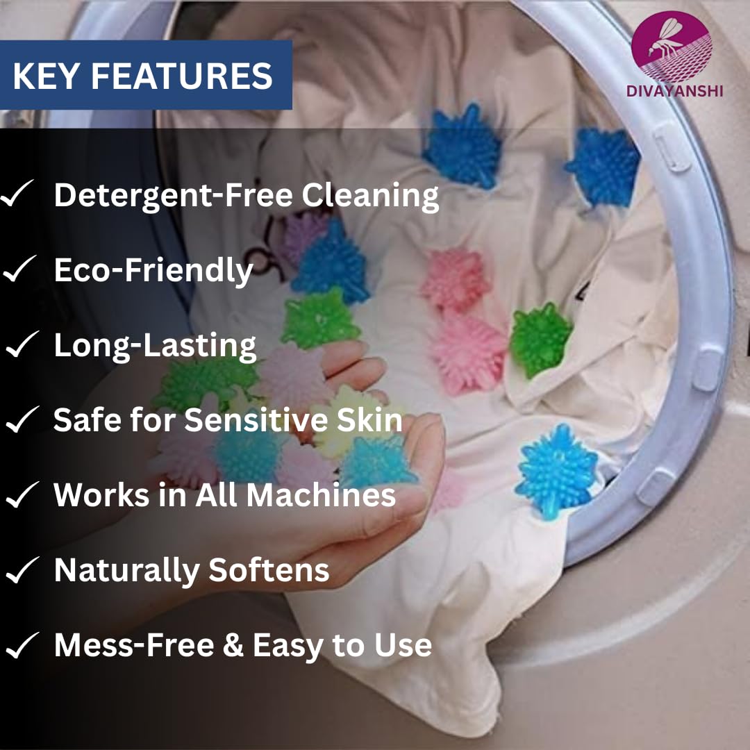 Experience Next-Level Laundry Care with Divayanshi Laundry Balls – The Smarter, Safer, and Eco-Friendly Alternative to Harsh Detergents & Softeners Divayanshi Laundry Balls are designed to revolutionize the way you do laundry. These high-performance, reusable washing machine balls are crafted to provide a chemical-free, eco-conscious alternative to traditional fabric softeners and detergents. Ideal for both top-load and front-load washing machines, these laundry balls gently scrub clothes, lift dirt, and help improve detergent efficiency – all while being kind to your fabrics and the planet. Key Features: ✅ Eco-Friendly & Reusable: Save the environment and your wallet. Each ball lasts for hundreds of washes, reducing plastic waste and the need for single-use softeners. ✅ Chemical-Free Cleaning: Safe for sensitive skin and baby clothes. No harsh chemicals or synthetic fragrances. ✅ Lint & Wrinkle Reduction: Special nodules reduce static cling, prevent lint build-up, and minimize wrinkles – making ironing easier and quicker. ✅ Enhanced Detergent Performance: Improves water circulation and boosts the power of your detergent for a deeper clean. ✅ Softens Fabrics Naturally: Leaves your clothes feeling soft and fresh without damaging fibers. ✅ Gentle Yet Effective: Perfect for cotton, wool, synthetics, delicates, and even heavy fabrics like denim and towels. Why Choose Divayanshi? Because your family deserves clean clothes without compromise. Whether you’re washing everyday outfits, baby garments, or delicate fabrics, our laundry balls ensure a thorough clean with zero irritation. They’re compact, travel-friendly, and an excellent solution for eco-conscious households. Pack Includes: 10 Reusable Laundry Balls Suitable For: All washing machines (top and front load) Make the switch to sustainable washing with Divayanshi Laundry Balls – the smarter way to care for your clothes, your skin, and the Earth.
