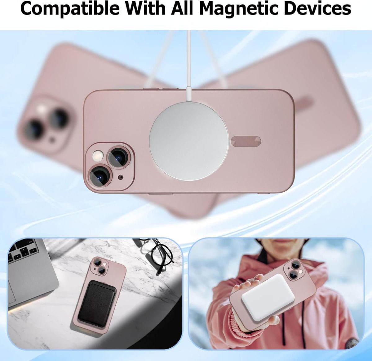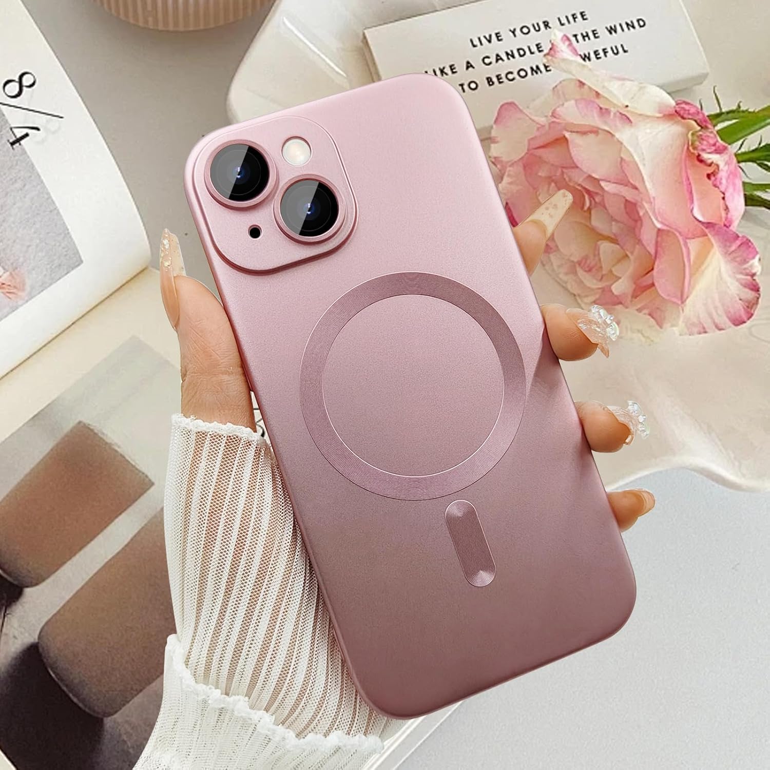 DIZORO Magnetic Case for iPhone 15 Plus Case [Compatible with MagSafe][Built-in Camera Lens Protector] Slim Soft Silicone Bumper Shockproof Metallic Luster Back Cover Phone Case (Pink)