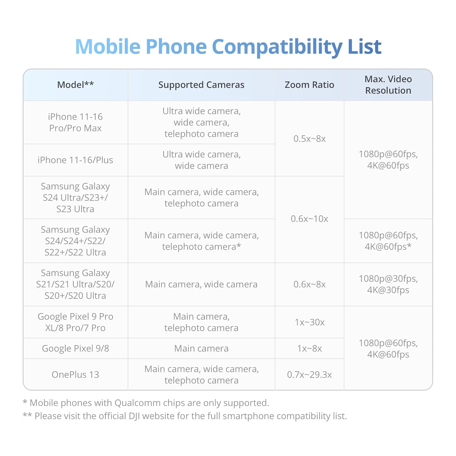 DJI Osmo Mobile 7 Batteries : 1 12V batteries required. (included) Product Dimensions : 27.8 x 10.7 x 9.3 cm; 300 g Date First Available : 18 February 2025 Manufacturer : DJI ASIN : B07FSS4R16 Item model number : 6941565997586 Country of Origin : China Manufacturer : DJI, DJI, No. 8 Xingye Road, Shangdi Village, Liaobu Town, Dongguan City, Guangdong Province,China,523428 Packer : DJI, No. 8 Xingye Road, Shangdi Village, Liaobu Town, Dongguan City, Guangdong Province,China,523428 Importer : AGELESS DIGITAL TECHNOLOGIES PRIVATE LIMITED D-88 SECTOR-6 NOIDA GAUTAM BUDDHA NAGAR 201301, Service & Support – Call : 0120 4456045, 0120 4770072, 0120 4852751, WhatsApp : 7042183941 Item Weight : 300 g Item Dimensions LxWxH : 27.8 x 10.7 x 9.3 Centimeters Net Quantity : 1 Count Included Components : Osmo Mobile 7, Magnetic Phone Clamp, Power Cable, Storage Pouch Generic Name : DJI Osmo Mobile 7 Best Sellers Rank: #791 in Electronics (See Top 100 in Electronics) #2 in Mobile Handheld Gimbals & Stabilisers Customer Reviews: 4.2 4.2 out of 5 stars 4,353 ratings var dpAcrHasRegisteredArcLinkClickAction; P.when(‘A’, ‘ready’).execute(function(A) { if (dpAcrHasRegisteredArcLinkClickAction !== true) { dpAcrHasRegisteredArcLinkClickAction = true; A.declarative( ‘acrLink-click-metrics’, ‘click’, { “allowLinkDefault”: true }, function (event) { if (window.ue) { ue.count(“acrLinkClickCount”, (ue.count(“acrLinkClickCount”) || 0) + 1); } } ); } }); P.when(‘A’, ‘cf’).execute(function(A) { A.declarative(‘acrStarsLink-click-metrics’, ‘click’, { “allowLinkDefault” : true }, function(event){ if(window.ue) { ue.count(“acrStarsLinkWithPopoverClickCount”, (ue.count(“acrStarsLinkWithPopoverClickCount”) || 0) + 1); } }); }); Experience Seamless Stability – Osmo Mobile 7’s robust 3-axis gimbal stabilization ensures lossless stability. Capture creative bursts and craft stunning, cinema-quality masterpieces with ease. Streamline Your Creativity – The Osmo Mobile 7 phone gimbal features an integrated foldable design with a built-in tripod [5], making solo creation effortless and storage hassle-free. Stay In Focus – With DJI Mimo’s ActiveTrack 7.0, track subjects with your gimbal in more diverse scenarios. No matter how bold your moves, enjoy smooth tracking every step of the way. Capture Like a Pro From Day One – Pair your Osmo Mobile 7 with DJI Mimo for ShotGuides and One-Tap Edit. Film and edit like a pro, saving time and enhancing your creative storytelling instantly. Ultra-Light With Comfortable Grip – At just 300 grams [4], Osmo Mobile 7 boasts an ergonomic design and an anti-slip handle, making it the ideal phone gimbal for extended use. Empower Your Steady Creativity – Osmo Mobile 7 offers a max operating time of 10 hours [6] and can also charge your phone via USB-C, ideal for extended outdoor filming and live streaming. Includes the gimbal, magnetic phone clamp, etc. Experience smooth tracking in a lightweight, portable design. For more creative possibilities, you can buy the DJI OM 7 Series Tracking Kit separately. Due to platform compatibility issues, the DJI Mimo app has been removed from Google Play. For a better product experience, please visit the official DJI website to download the latest version of DJI Mimo.