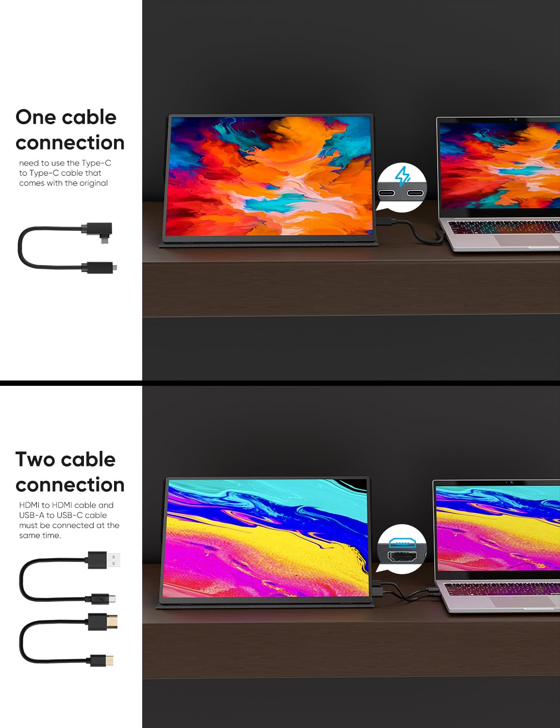 [Frameless Design & Lightweight Portability] Enjoy an immersive visual experience with the ultra-slim 0.19-inch frameless design, giving you a wider viewing area. Weighing just 2.58lb, our portable monitor is perfect for on-the-go use. ake it anywhere with ease and enjoy true portability and travel-friendly convenience.