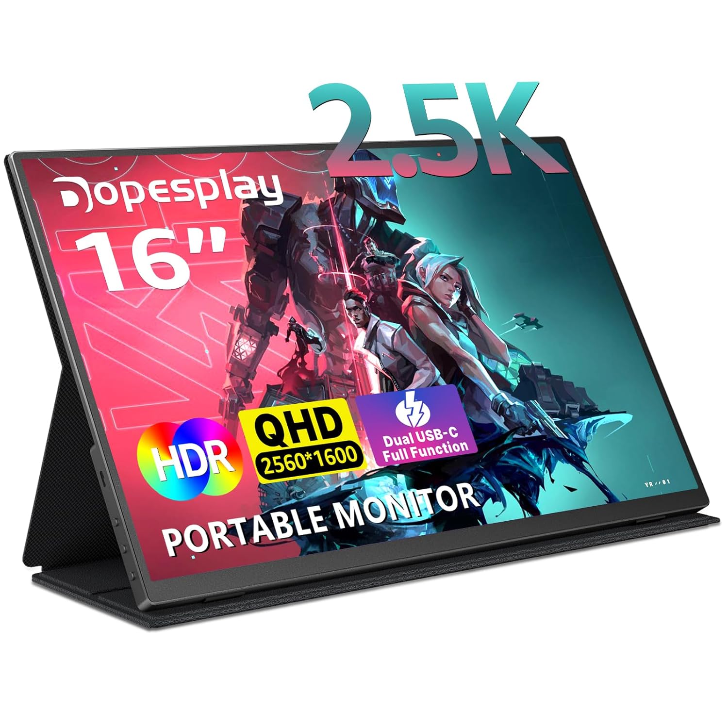 Dopesplay 2.5K Portable Monitor for Laptop16 Inch 2560 * 1600 100% sRGB Comupter Gaming Display with HDR USB C HDMI, Ideal for Travel, Second, Extend Screen
