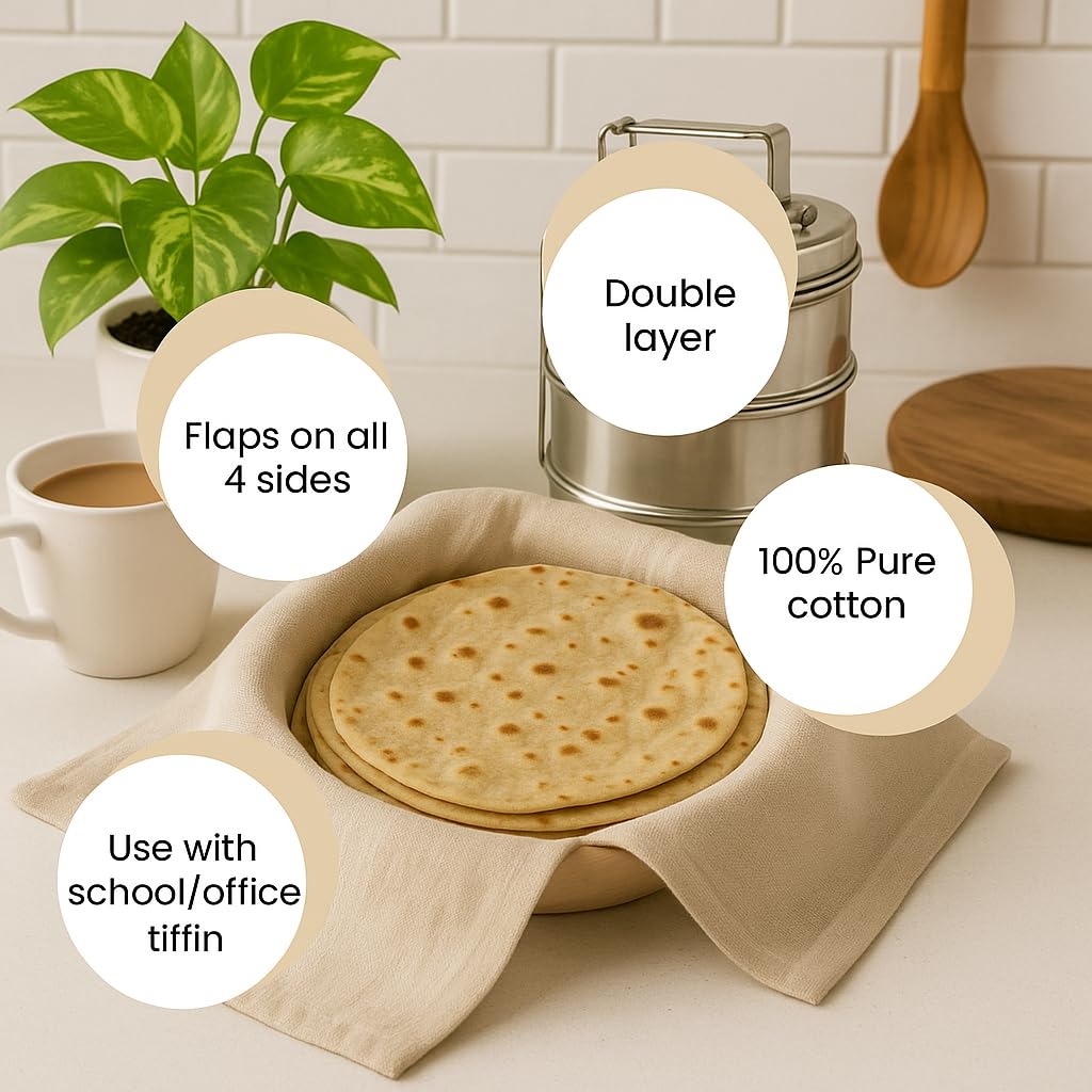 ✅ Breathable & Hygienic Cotton Fabric – Made from premium casement cotton, this roti kapda allows steam to escape while locking in heat, ensuring perfectly fluffy rotis every time.