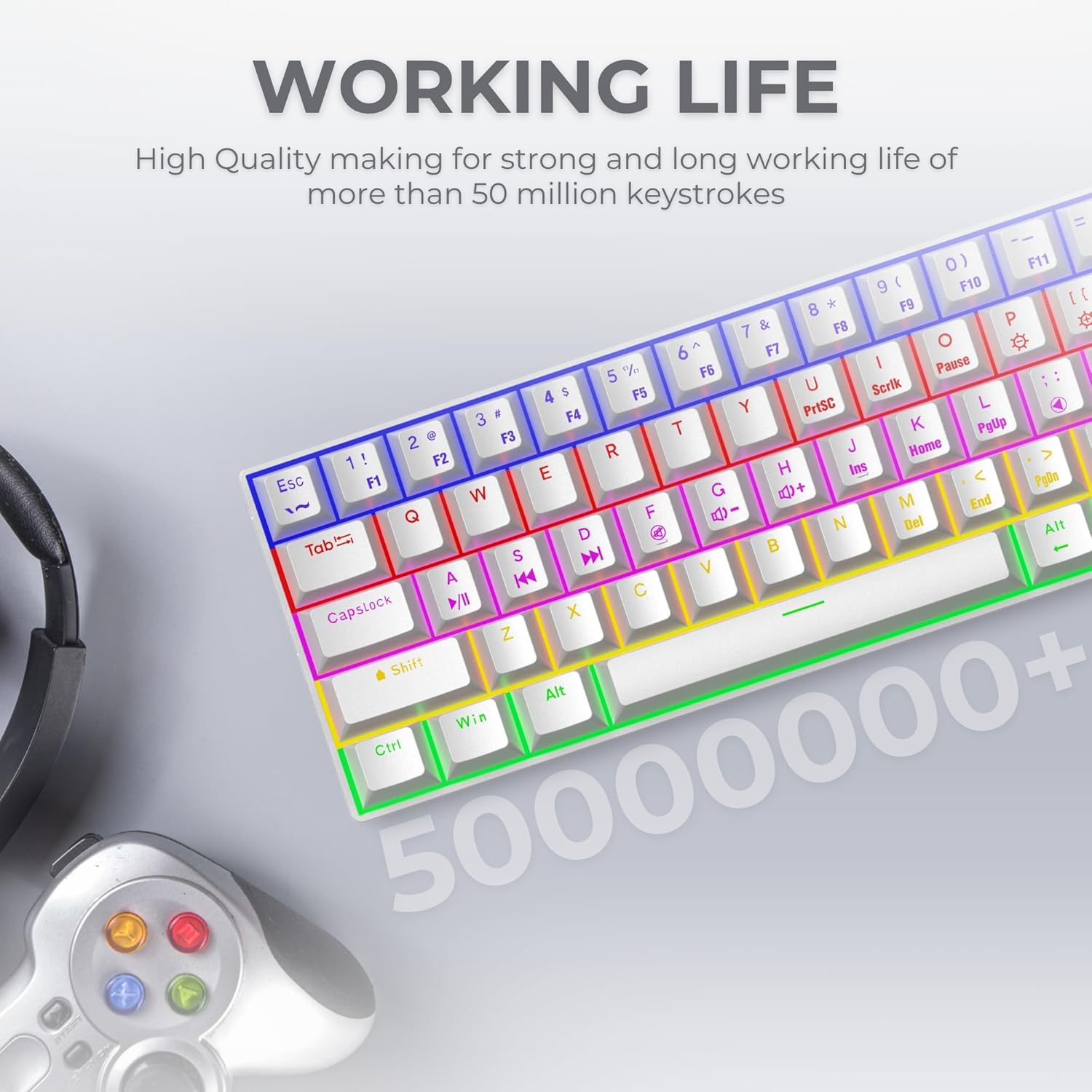 60% Light Weight Design: This 61-key compact mechanical keyboard is perfect for gaming setups with limited desk space. Comes with featherlight weight of 420gm.