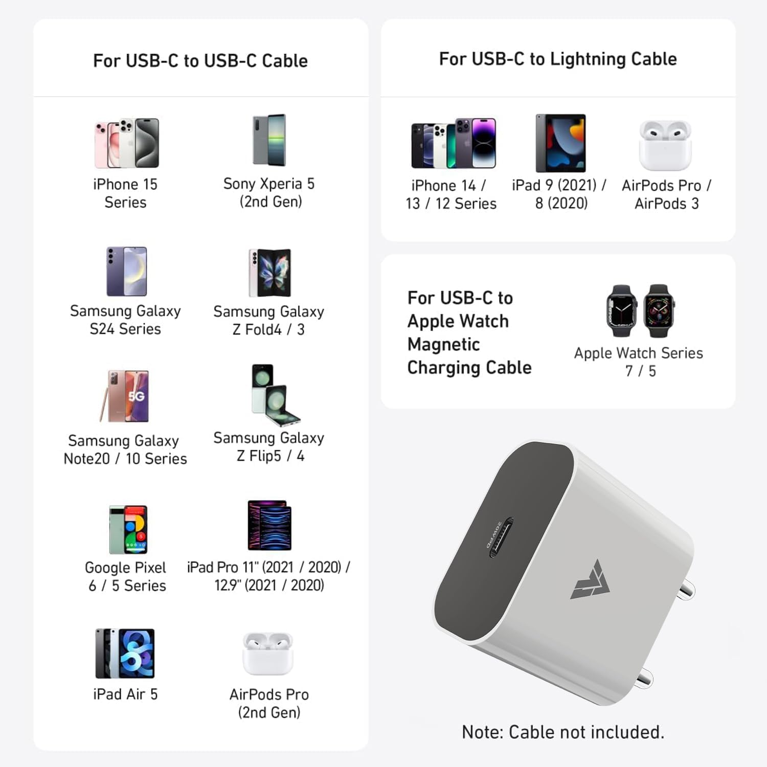 【Sales Package】1 x 20w Adapter, 1 x Lightning Data Cable.